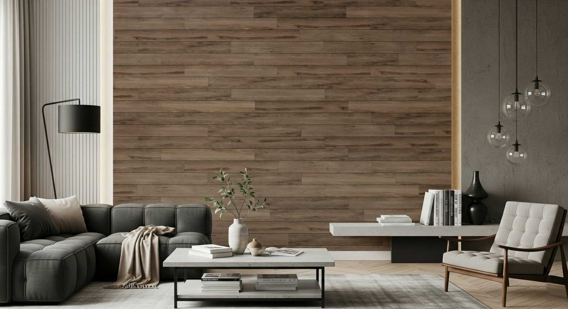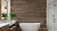 Create a cozy farmhouse vibe with this distressed barn wood effect. The varying shades of brown add visual interest and a sense of history to the space. This wallpaper for walls creates a welcoming atmosphere in entryways, bedrooms, or living spaces. Its simple, repeating pattern blends easily with various décor styles. It brings a touch of country charm into urban or suburban homes.