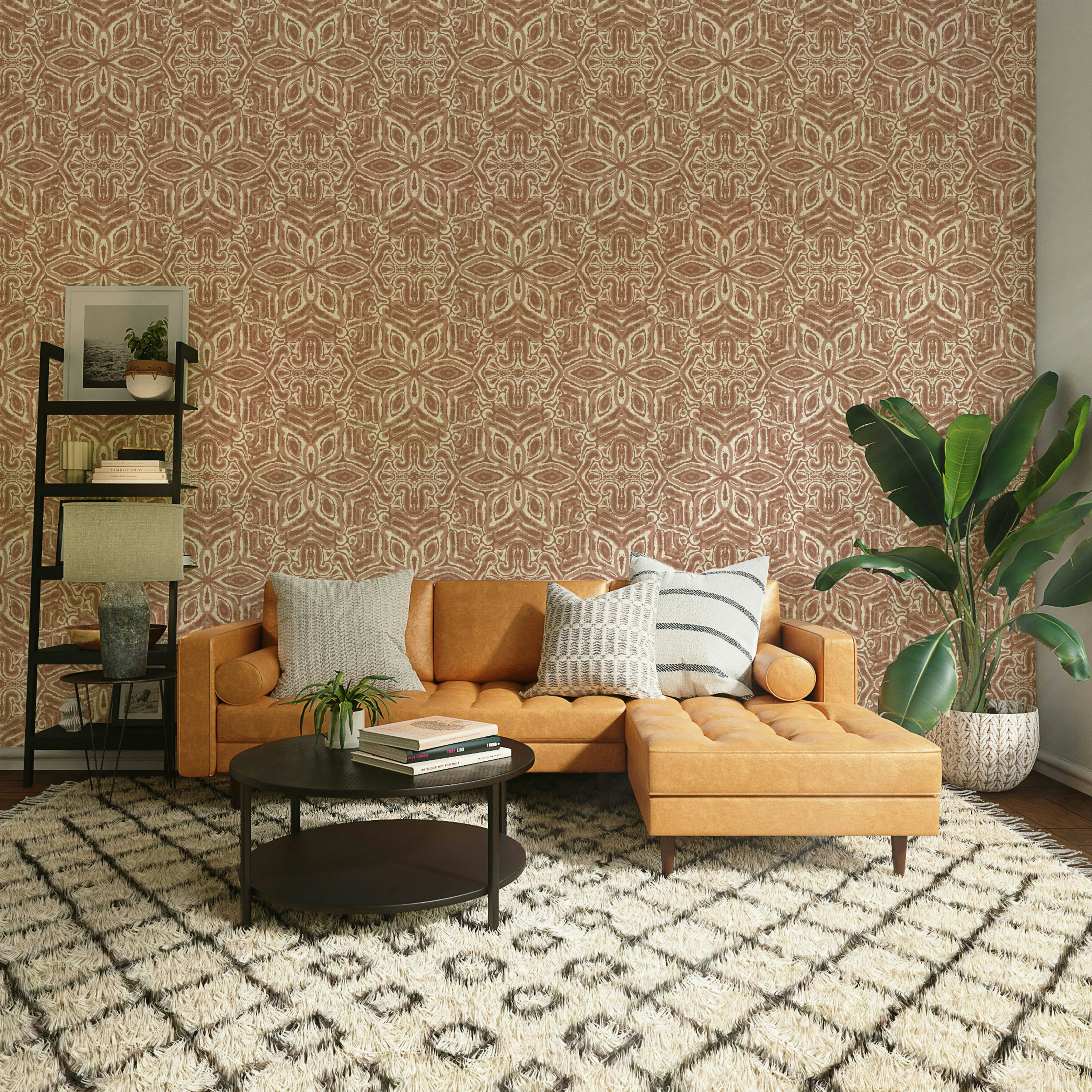 Batik Geometric Flower Mocha Mousse Wallpaper⁠