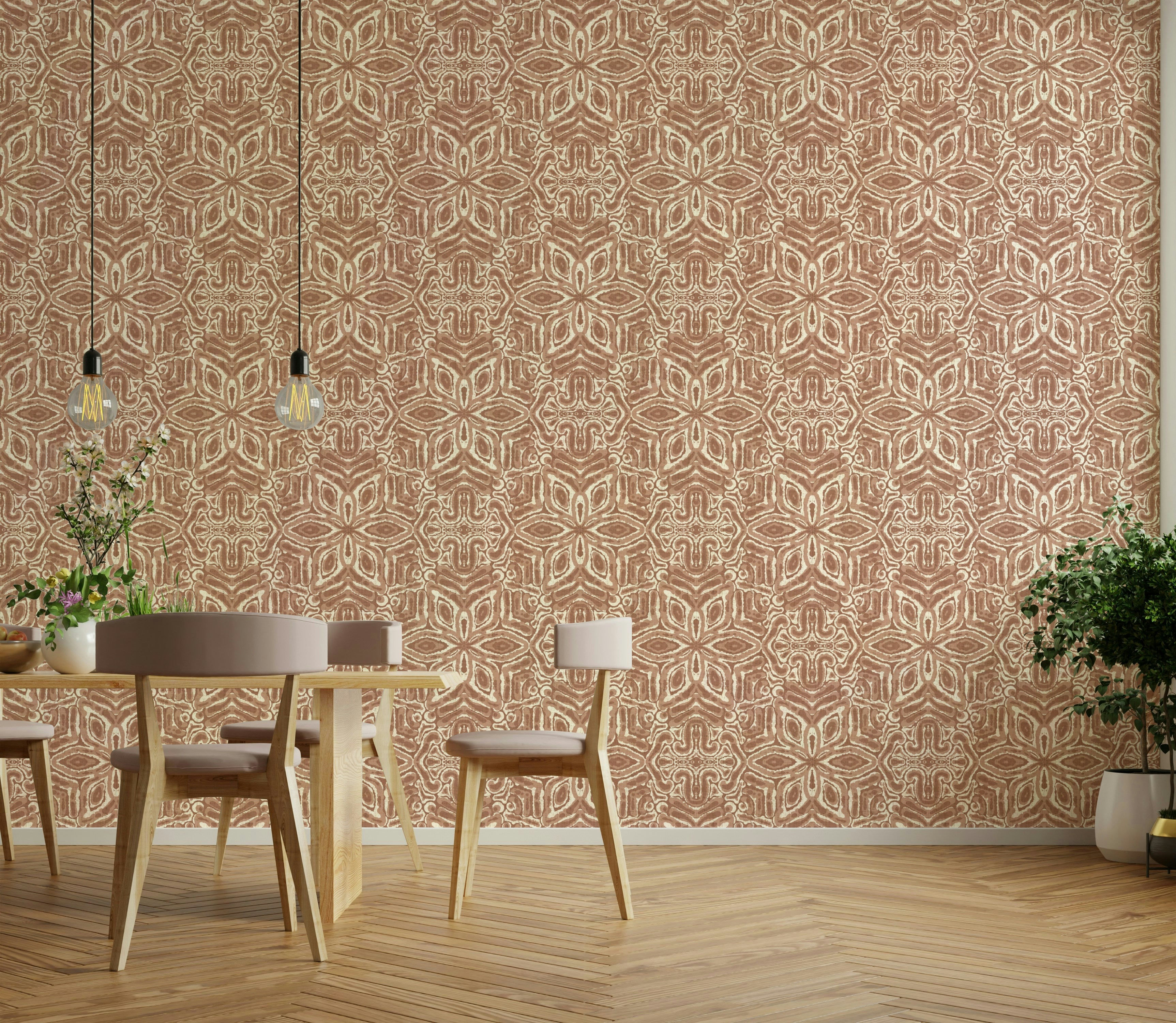 Batik-inspired brown wall mural