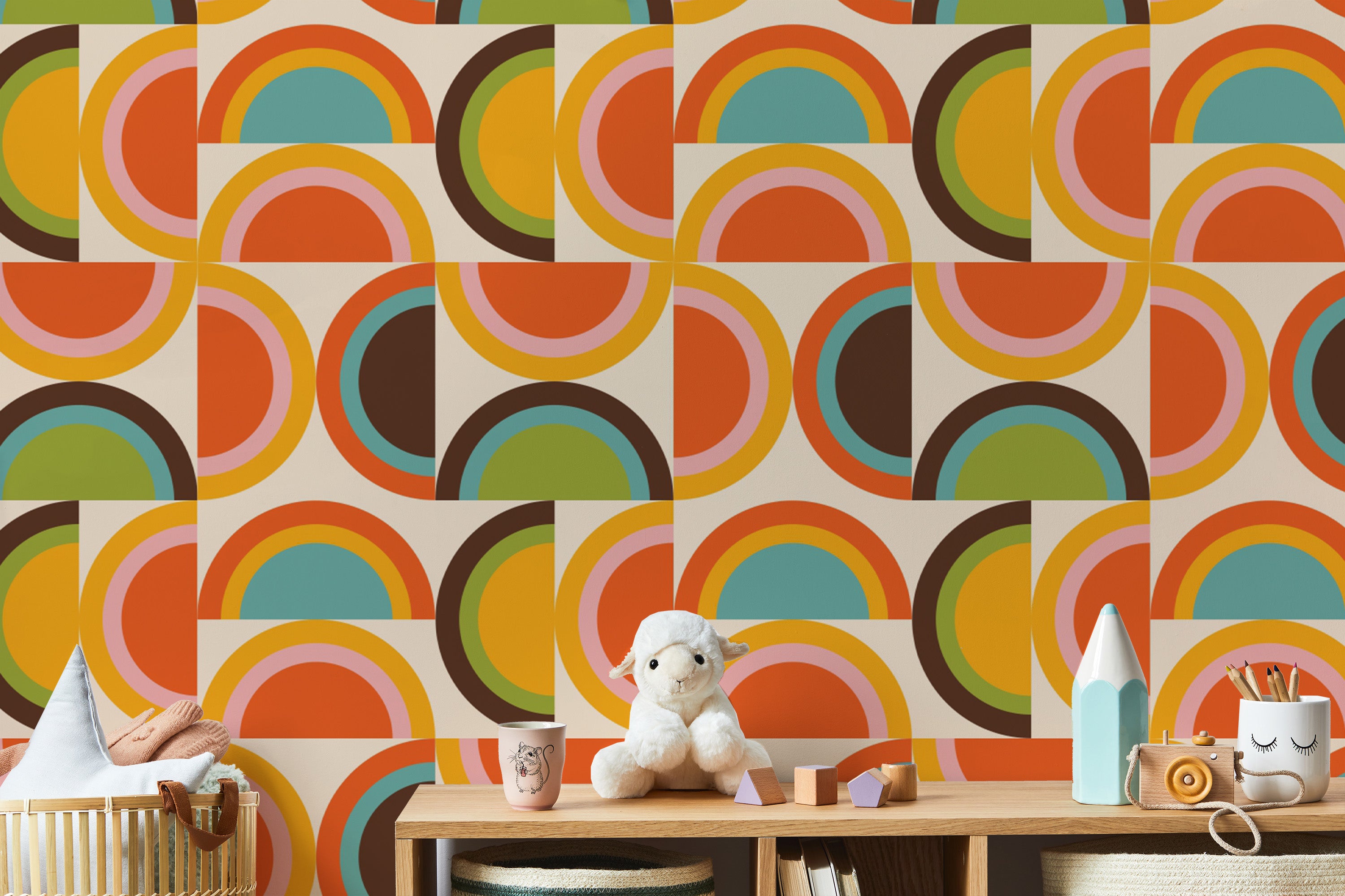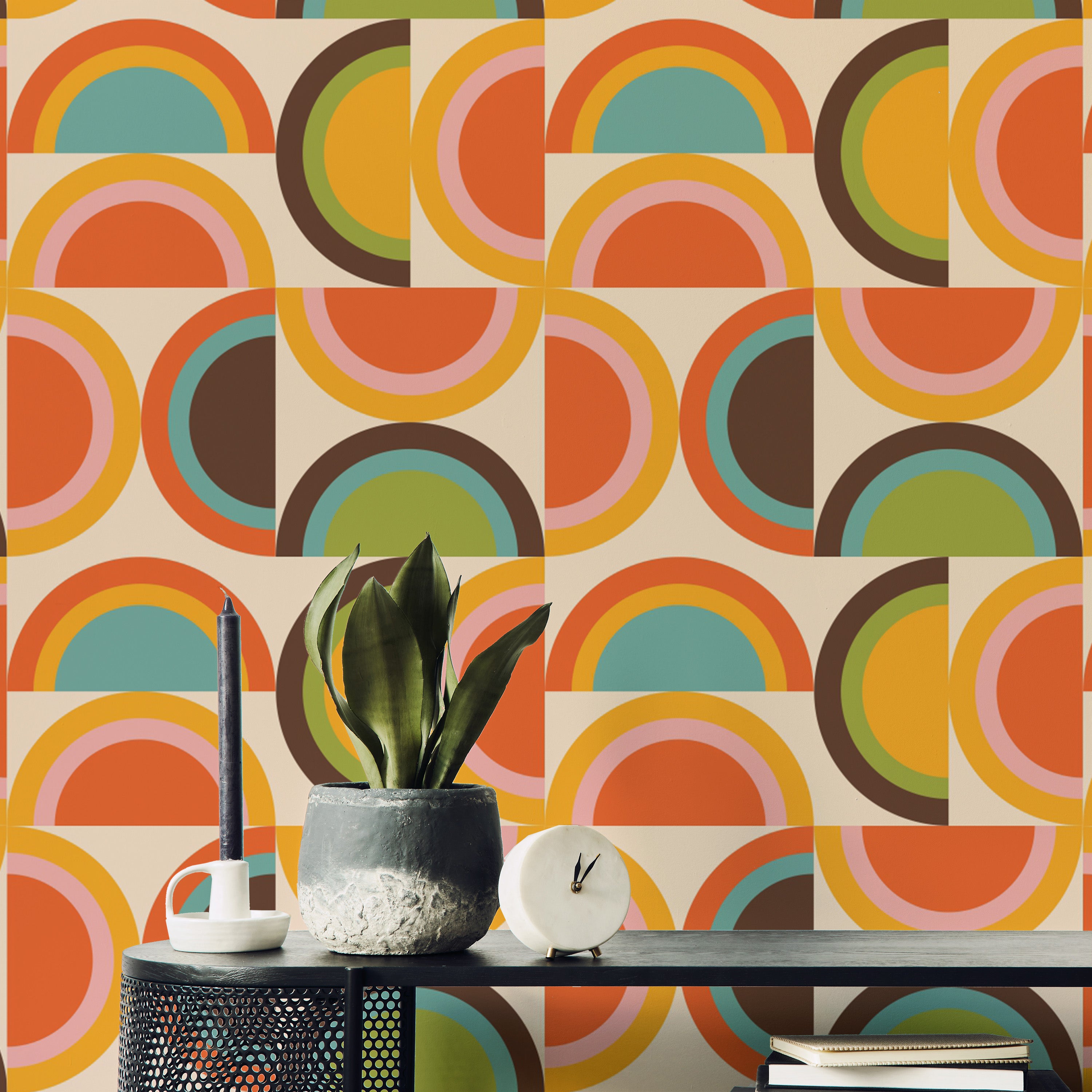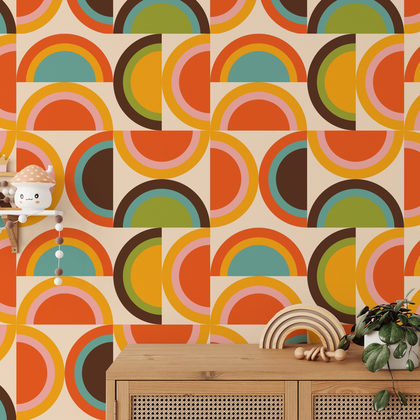 Geometric retro boho wallpaper in warm palette