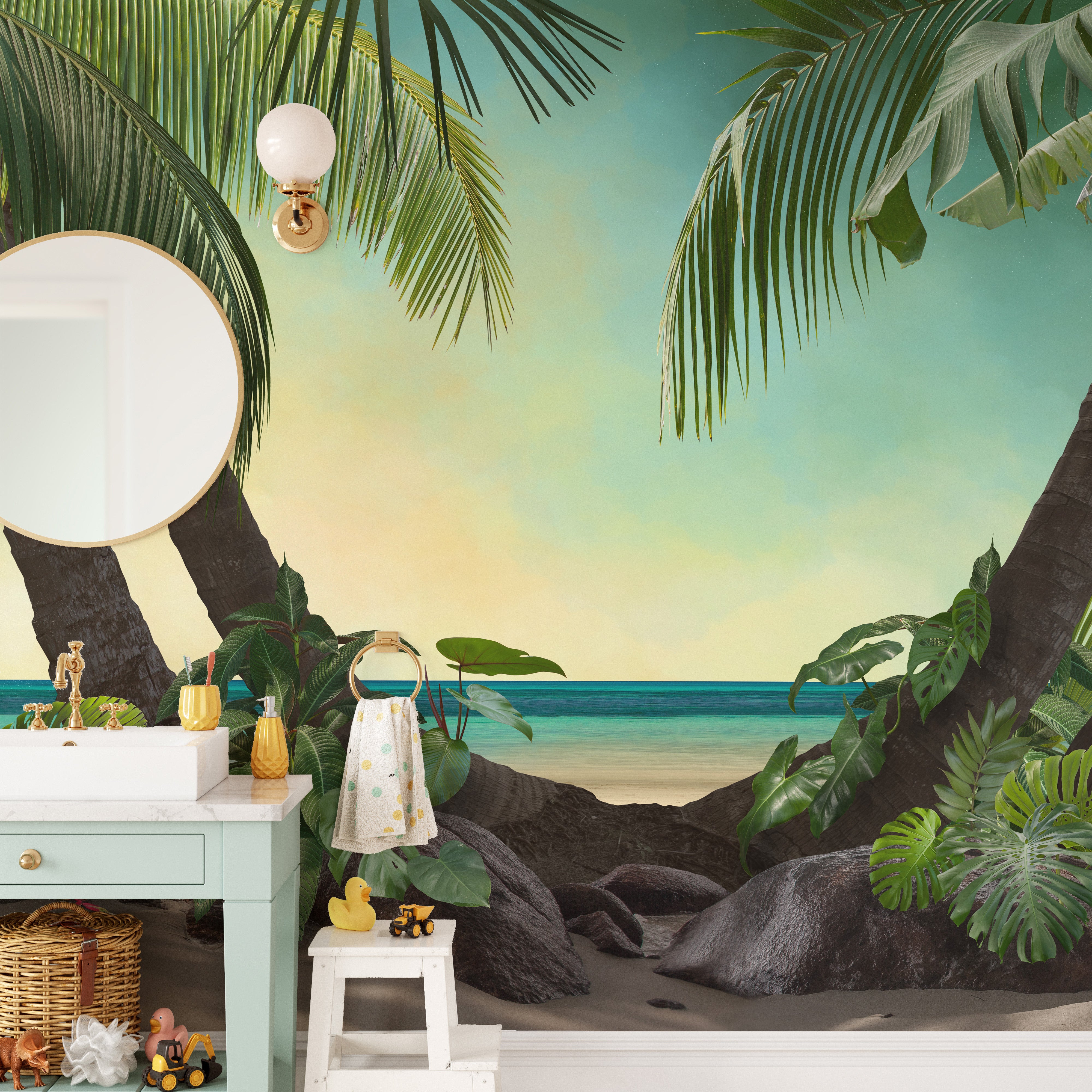 Escape to paradise every day with our Beach Lagoon View Wallpaper Mural. This breathtaking design features a crystal-clear lagoon with pristine beaches, inviting you to immerse yourself in a tranquil tropical escape. Perfect for those who dream of sandy shores and serene waters, this wallpaper turns any room into a beachfront oasis. It's an excellent choice for bedrooms, bathrooms, or living spaces where a calming and relaxing ambiance is desired. Homeowners, renters, and interior designers will appreciate the mural's ability to create a vacation-like atmosphere, while the straightforward application process is a plus for anyone looking to easily enhance their space with a stunning view.