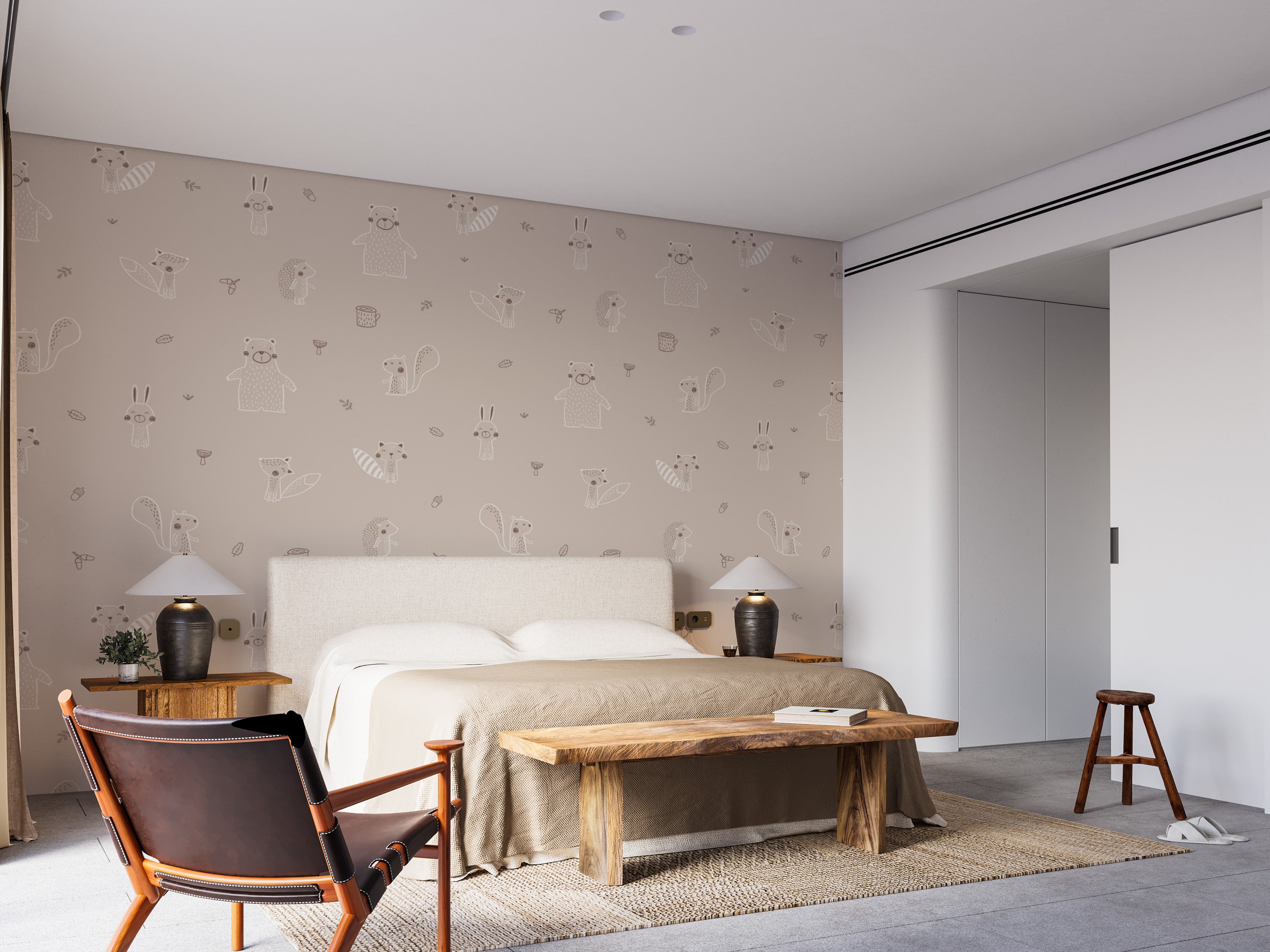 Gentle beige forest wallpaper for a nature-inspired nursery.
