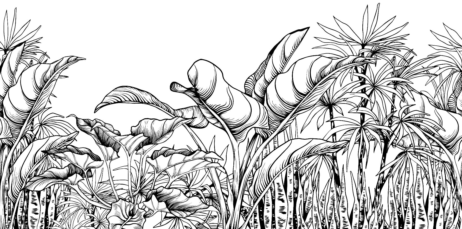 Bold tropical leaves mural in black and white