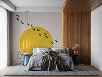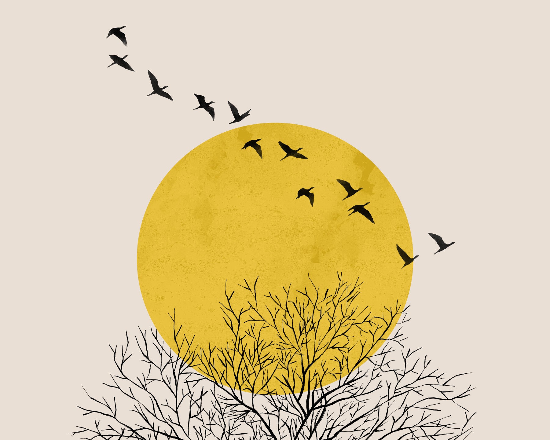 Embrace the tranquility of dawn with "Birds at Sunrise," a minimalist piece that brings the serene beauty of nature into your home. This captivating artwork features a striking, textured golden sun rising behind a cluster of delicate, bare branches. A flock of birds, silhouetted against the luminous sky, embarks on their morning journey, symbolizing hope and new beginnings. The gentle, muted tones create a sense of calm and peace, making it an ideal addition to any room seeking a touch of natural elegance. Let this scene transform your walls into a vista of quiet beauty, inviting a sense of peaceful contemplation into your living space. Ideal for creating a focal point that embodies both simplicity and sophistication. Enhance your environment with the understated charm of the awakening world.