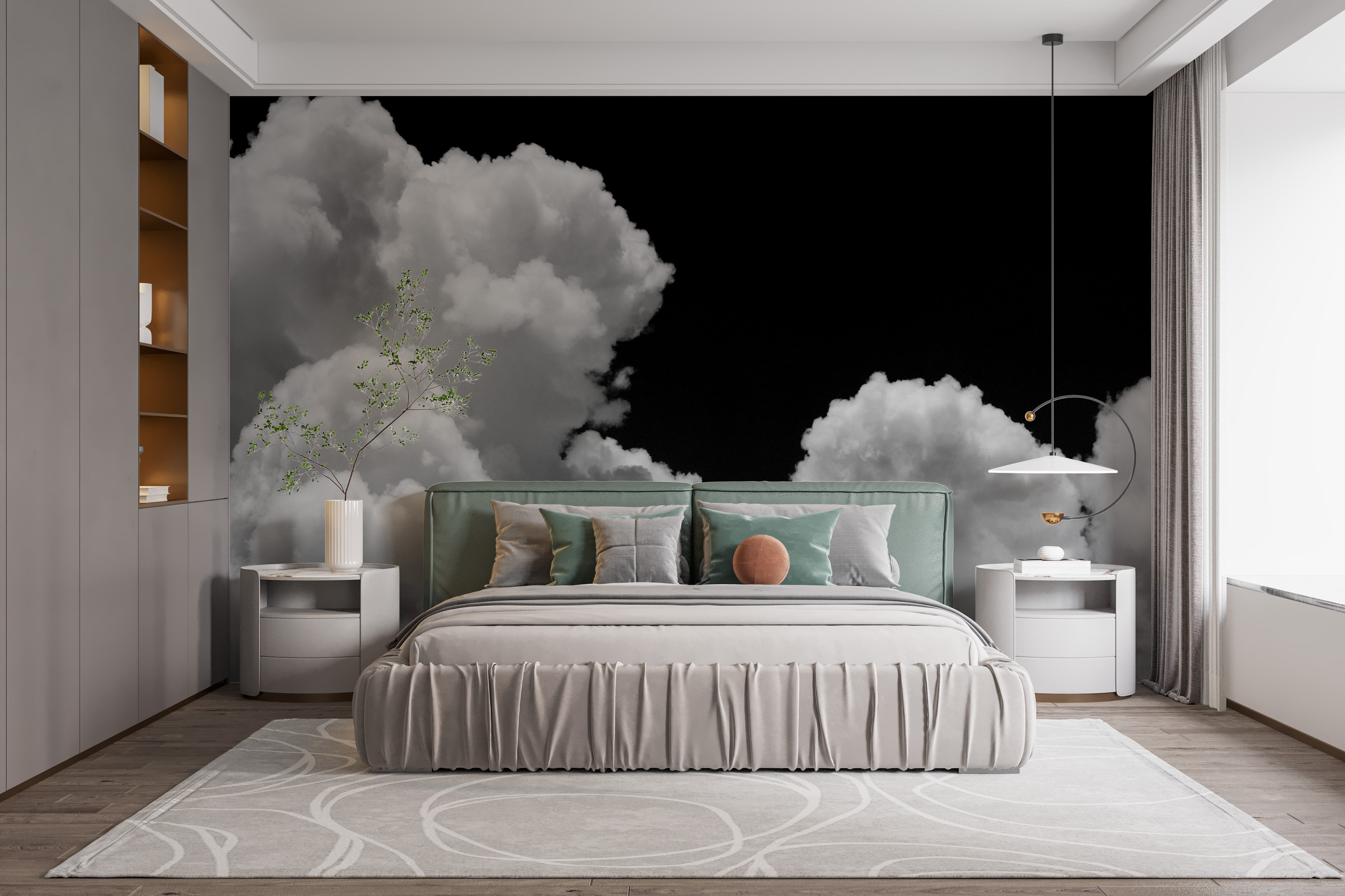 Easy to install and maintain, this white clouds wallpaper is designed to bring a touch of the extraordinary to your home or office. Whether you're aiming to create a focal point in your living room, bedroom, or workspace, our Clods with Black Background Wallpaper Mural is an impeccable choice. Experience a unique blend of art and ambiance, and let your walls tell a story of elegance and boldness.
