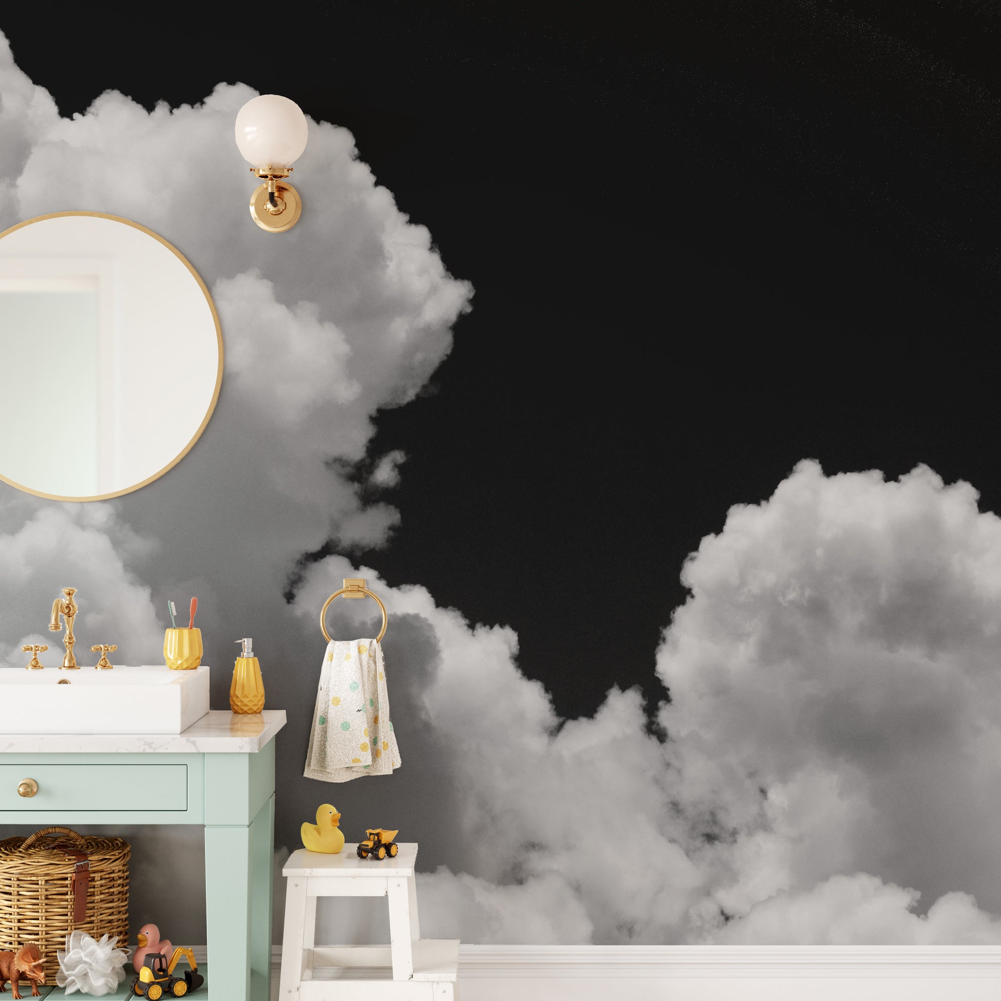 Bold cloud mural with monochrome contrast