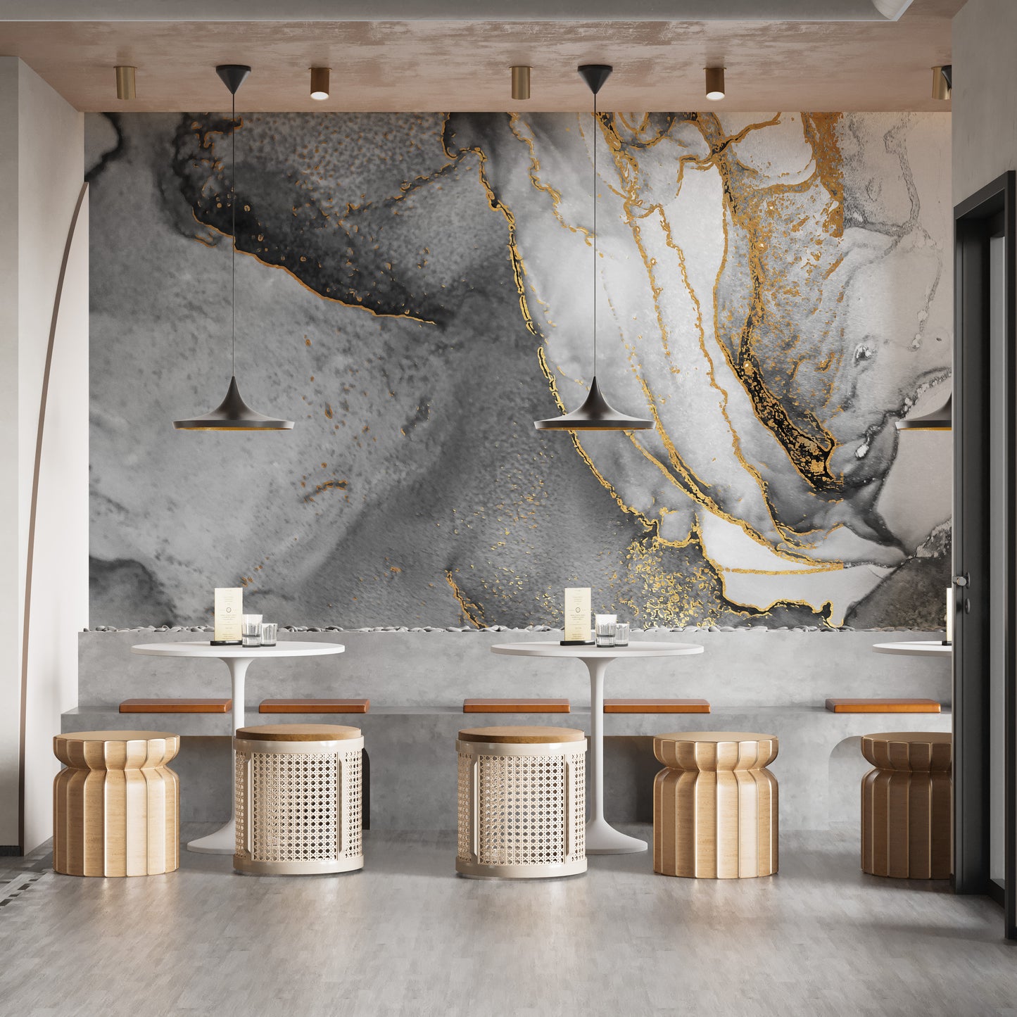 Immerse your interiors in the opulent swirls of the Black Gold Alcoholic Ink Wallpaper Mural, a luxurious fusion of deep blacks and shimmering golds. Crafted for those with an appreciation for artful elegance, this self-adhesive marble look wallpaper brings the unpredictable beauty of alcohol ink into your home without the fuss. Its peel-and-stick design ensures a hassle-free application, creating a striking watercolor effect that serves as a golden liquid decoration for any space. Ideal for adding a sophisticated touch to your home, this gold black wallpaper mural stands as a testament to refined taste and design simplicity. With its easy application and captivating design, it promises to be a conversation starter in any room it adorns.