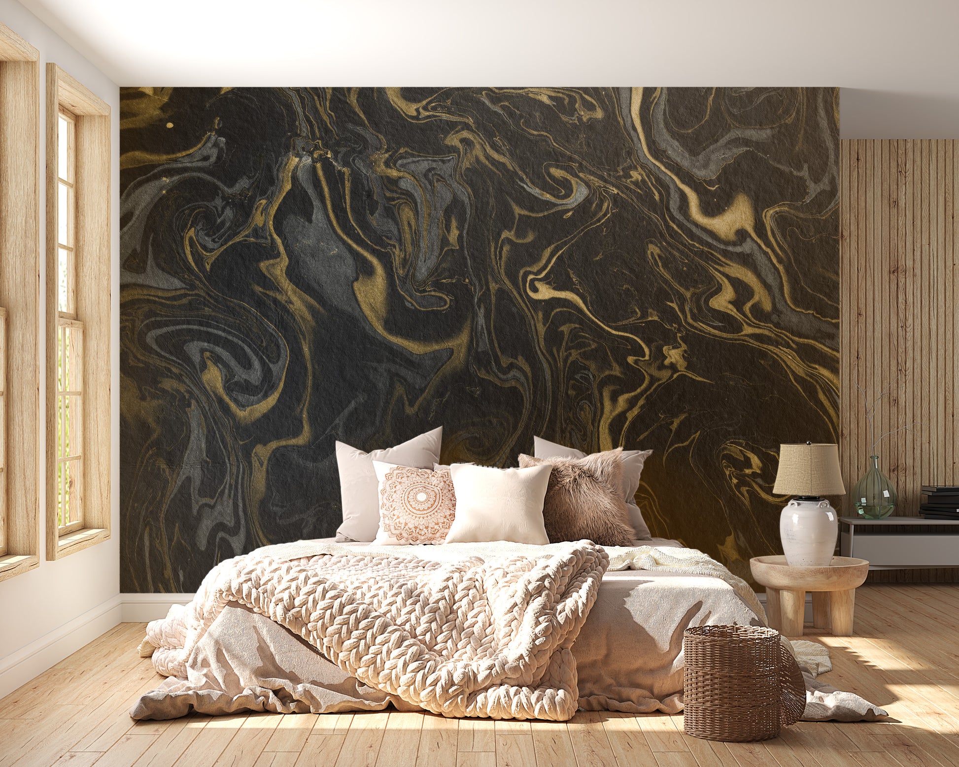 Black and Gold Marble Effect Wallpaper Wall Mural - Giffywalls