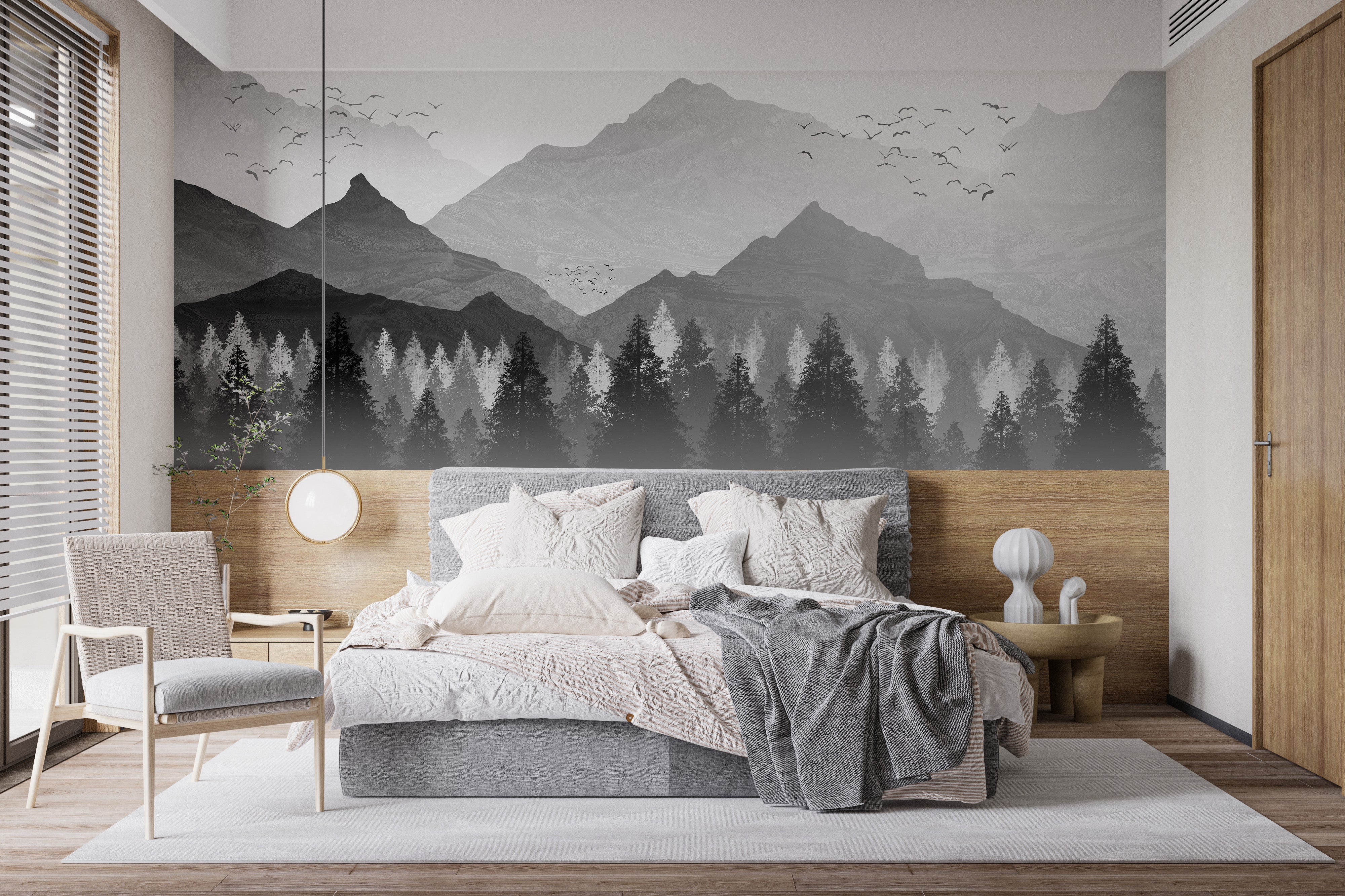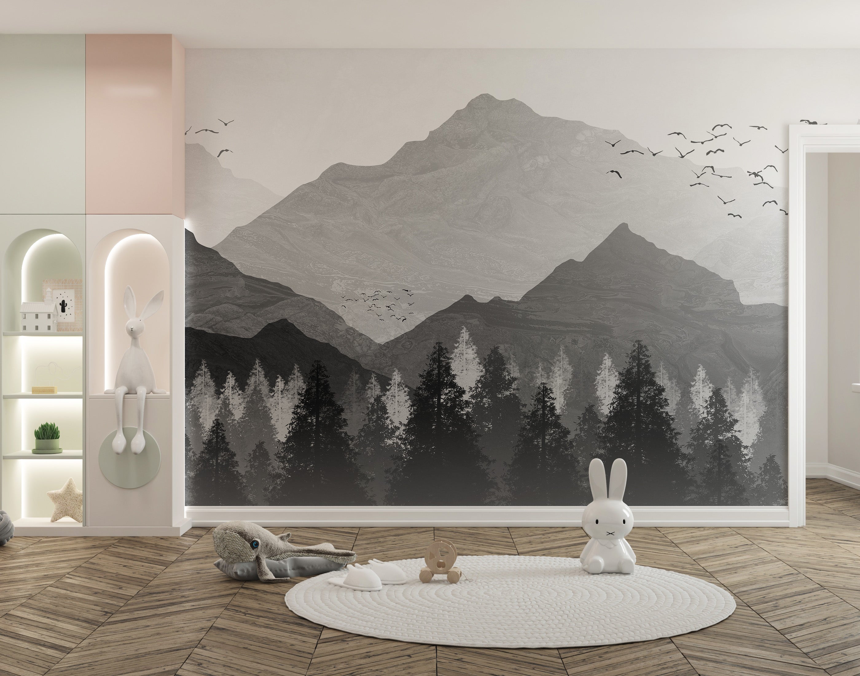 Chosen frequently by DIY enthusiasts, interior designers, and real estate professionals, this monochrome mountain wallpaper mural stands out for its simplicity and profound visual impact. It's not only easy to install but also transforms any room into a statement of elegance and contemplation, making it a valuable addition to both residential and commercial properties.