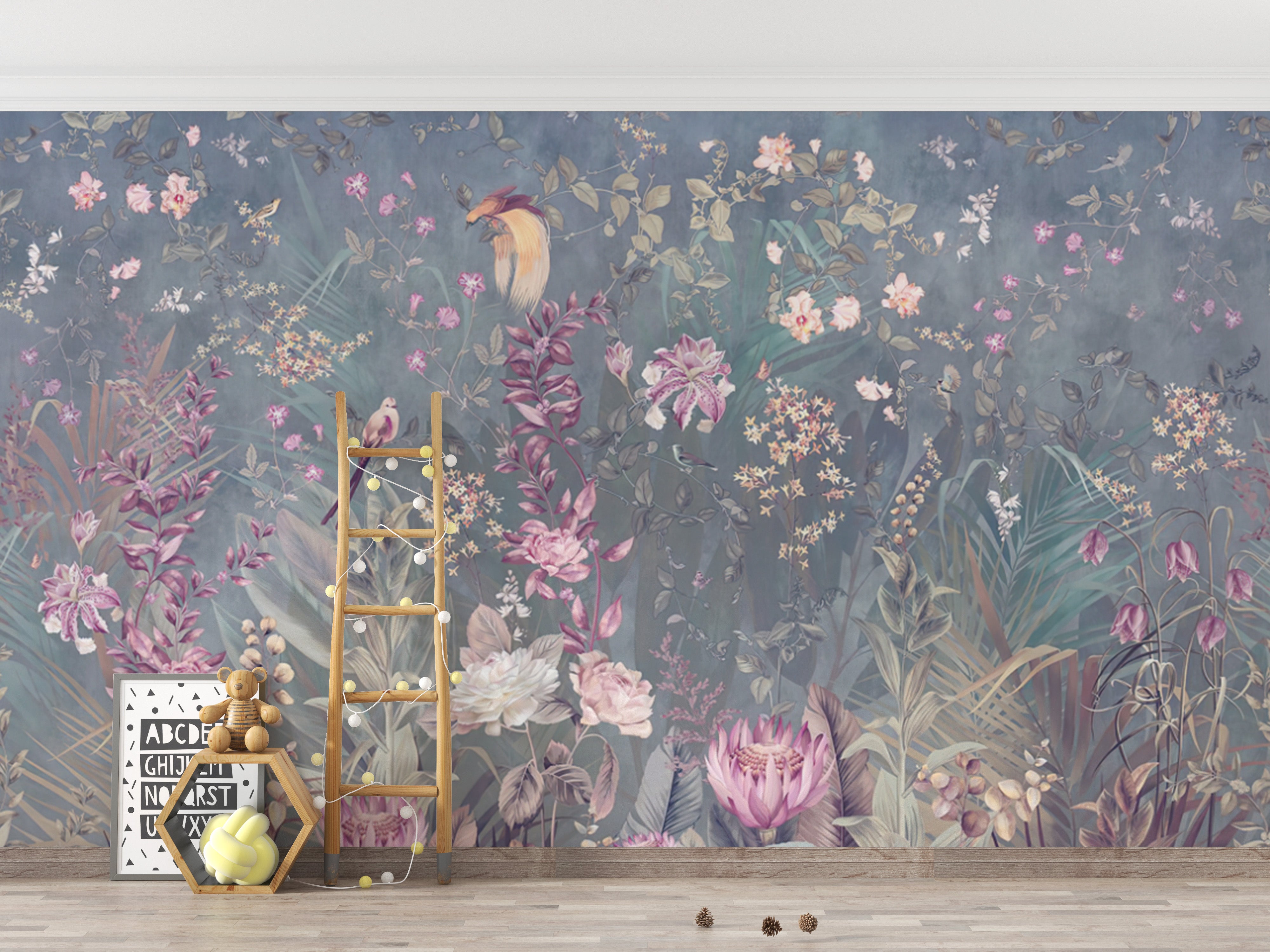 Nature-Inspired Purple Bloom Mural