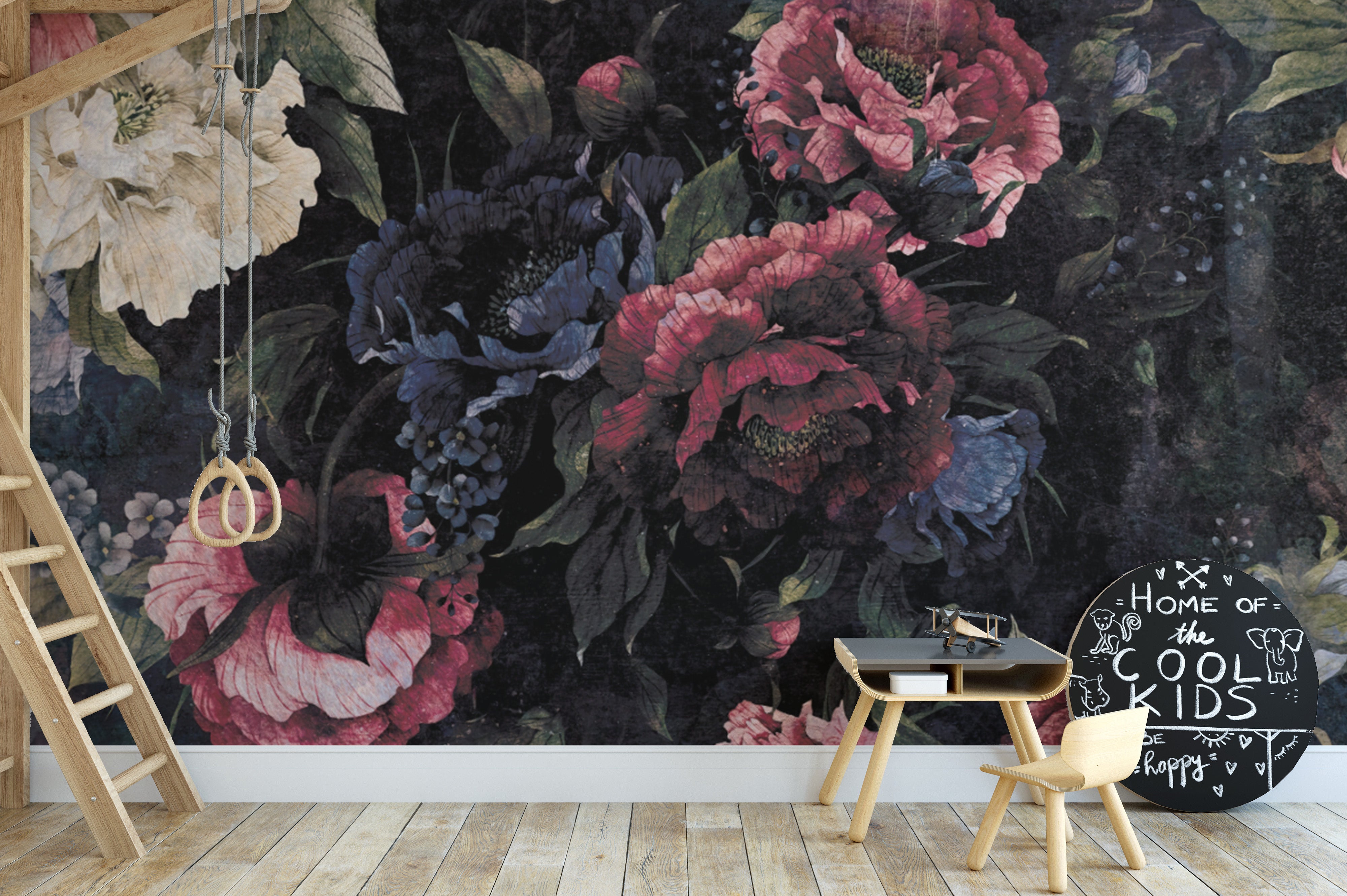 Discover the magic of nature right in the comfort of your bedroom with our blooms under moonlight mural wallpaper. This artistic masterpiece is more than just a decoration; it's an experience that breathes life into your personal space. Perfectly designed to fit seamlessly on your walls, this bedroom wallpaper captures the ethereal beauty of flowers under the soft glow of moonlight.
