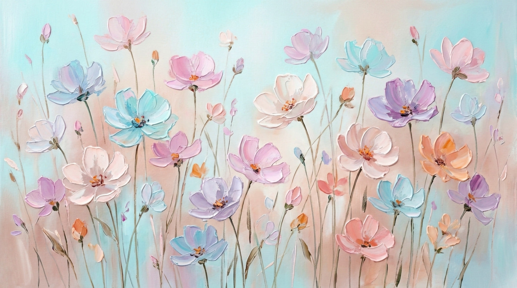 Adorn your walls with the beauty of a soft, painterly garden using this lovely wallpaper for walls. The design showcases an array of floral blooms crafted with artistic texture and a muted pastel color scheme. Ideal for creating a soothing atmosphere in bedrooms, living rooms, or hallways. This beautiful wall décor breathes life into interior spaces. The wallpaper’s delicate brushstrokes and gentle hues add an artistic elegance, making it a perfect choice for individuals who seek a stylish yet peaceful look. Bring warmth and understated grace to any room with this stunning design.