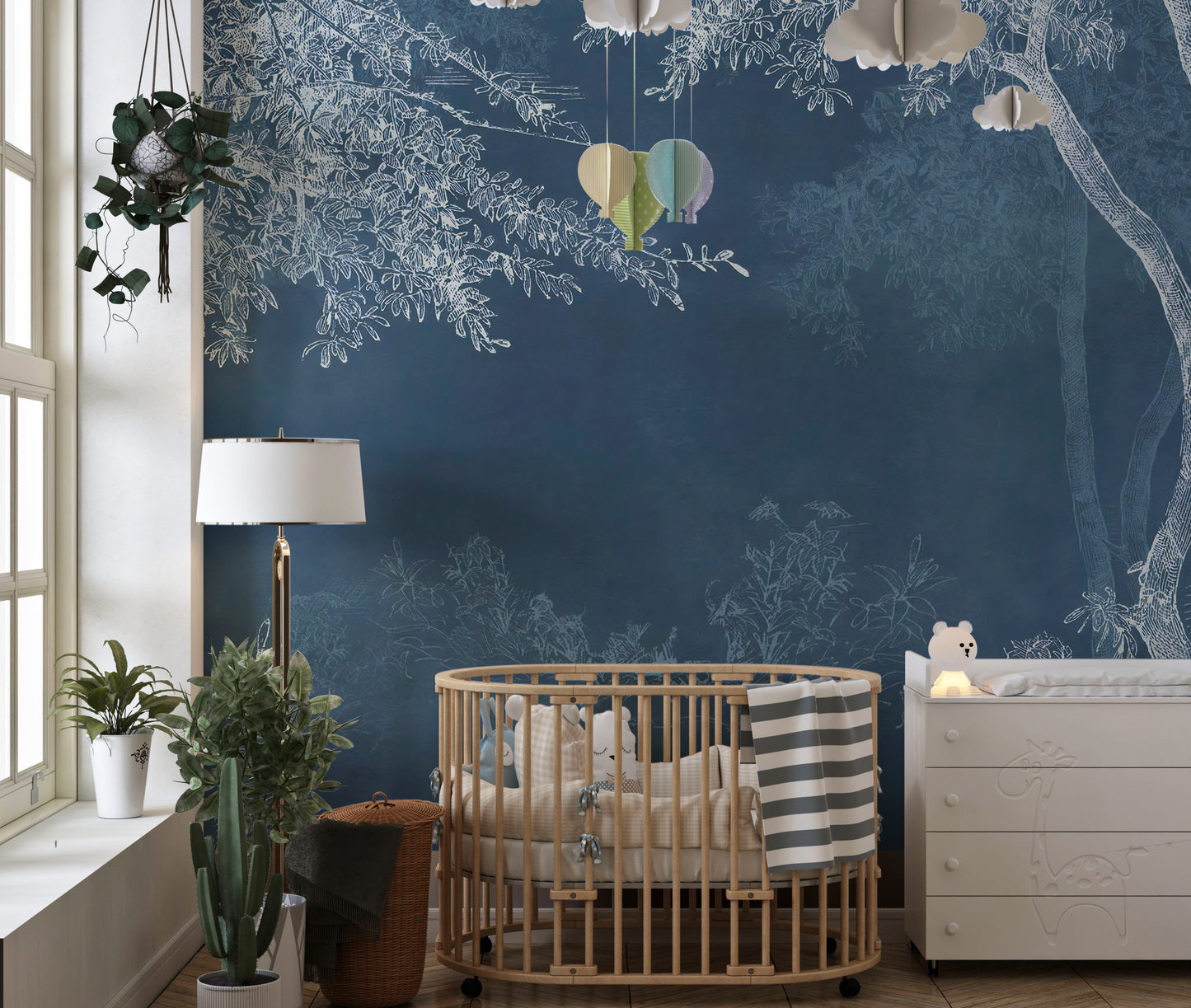 Transform your living space into a serene forest haven with our Blue Woods wallpaper murals. Immerse yourself in the tranquil indigo ambiance, where each white tree is meticulously detailed, evoking the appearance of an exquisitely handcrafted tree drawing wallpaper mural. Ideal for bedrooms and living rooms, this mural brings warmth, comfort, and a spacious feel, creating a peaceful retreat right in your home. Experience the perfect blend of artistry and nature with this unique Indigo Woods design that promises to elevate your decor and offer a daily escape to tranquility.