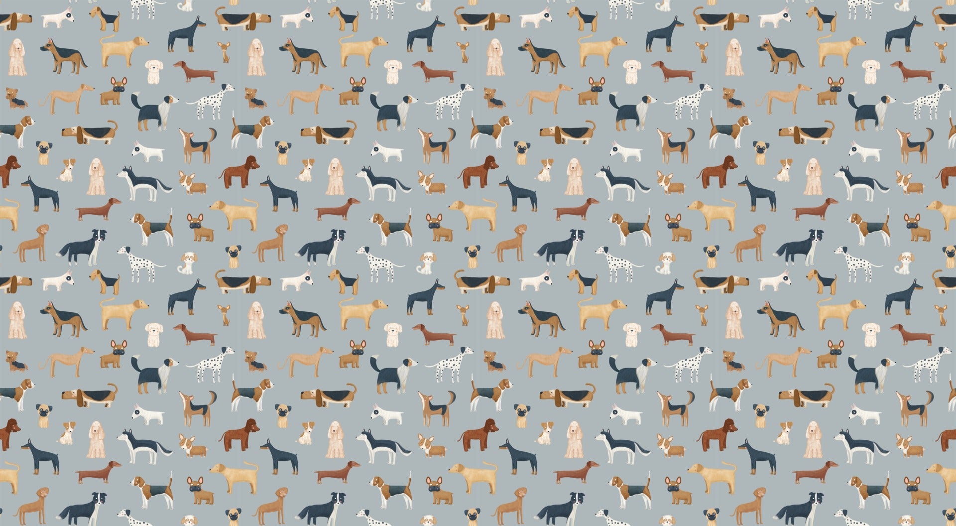 Bring a delightful parade of charm to your walls with our blue canine medley wallpaper. A whimsical array of dogs in various poses and breeds frolics against a serene blue backdrop, making any room a delightful den of canine companionship. Perfect for pet lovers or those looking to add a touch of playful sophistication to their decor, this blue wallpaper is a chic and heartwarming addition to both modern and traditional interiors. Create a cozy nook or a lively feature wall with this enchanting design that's sure to fetch compliments from all who see it.