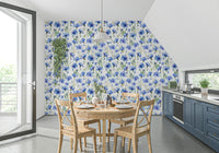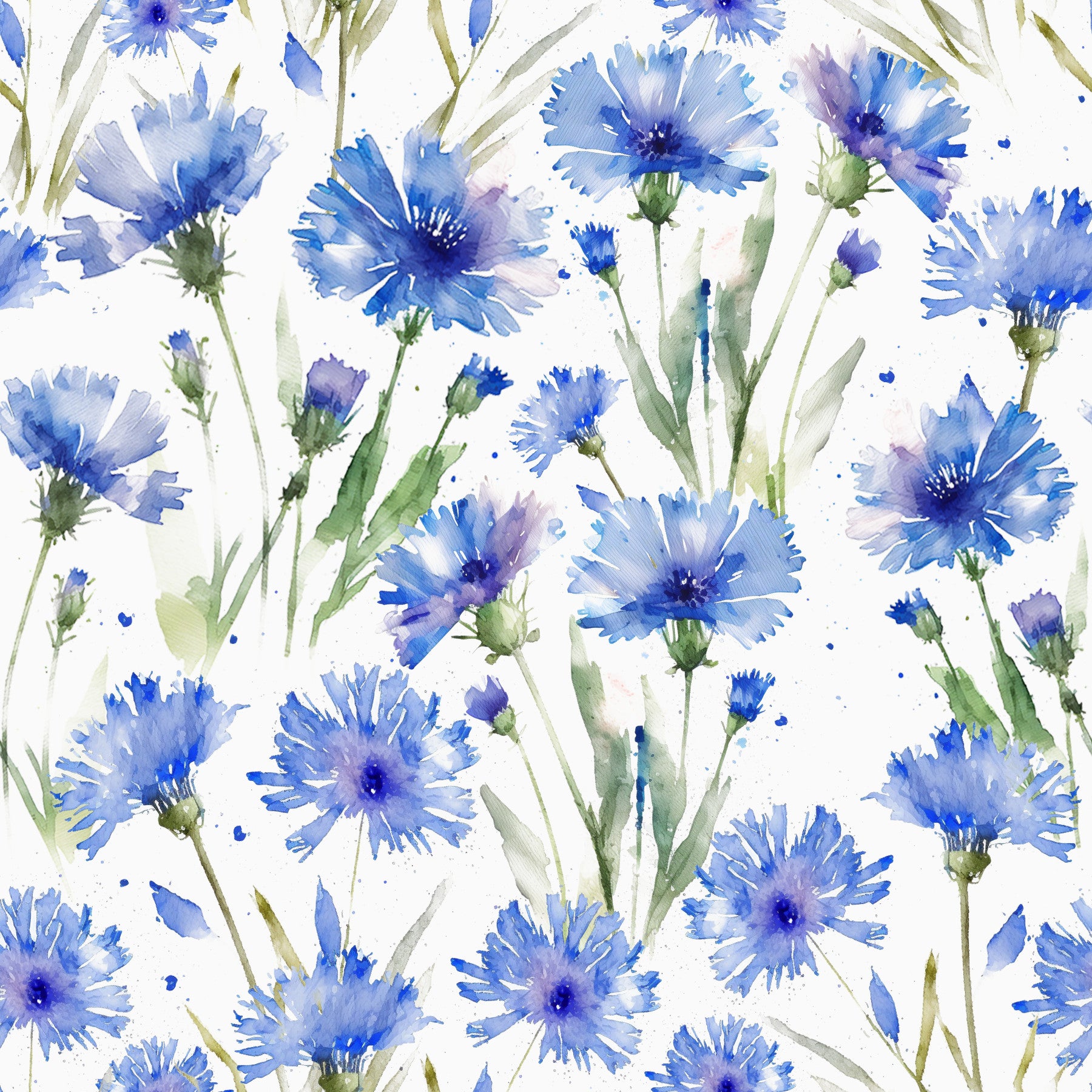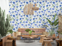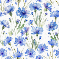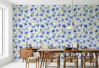 Embrace the calm elegance of this floral watercolor pattern by Uta Naumann. It showcases delicate cornflowers in shades of blue, gently painted with soft green foliage. This wallpaper for walls brings a touch of countryside charm and creates a serene ambiance. The design lends itself well to bedrooms, living rooms, or any space where a peaceful retreat is desired. The light and airy style enhances natural light, making rooms feel more spacious. It pairs effortlessly with both modern and classic furniture, creating a harmonious blend that's always in style.