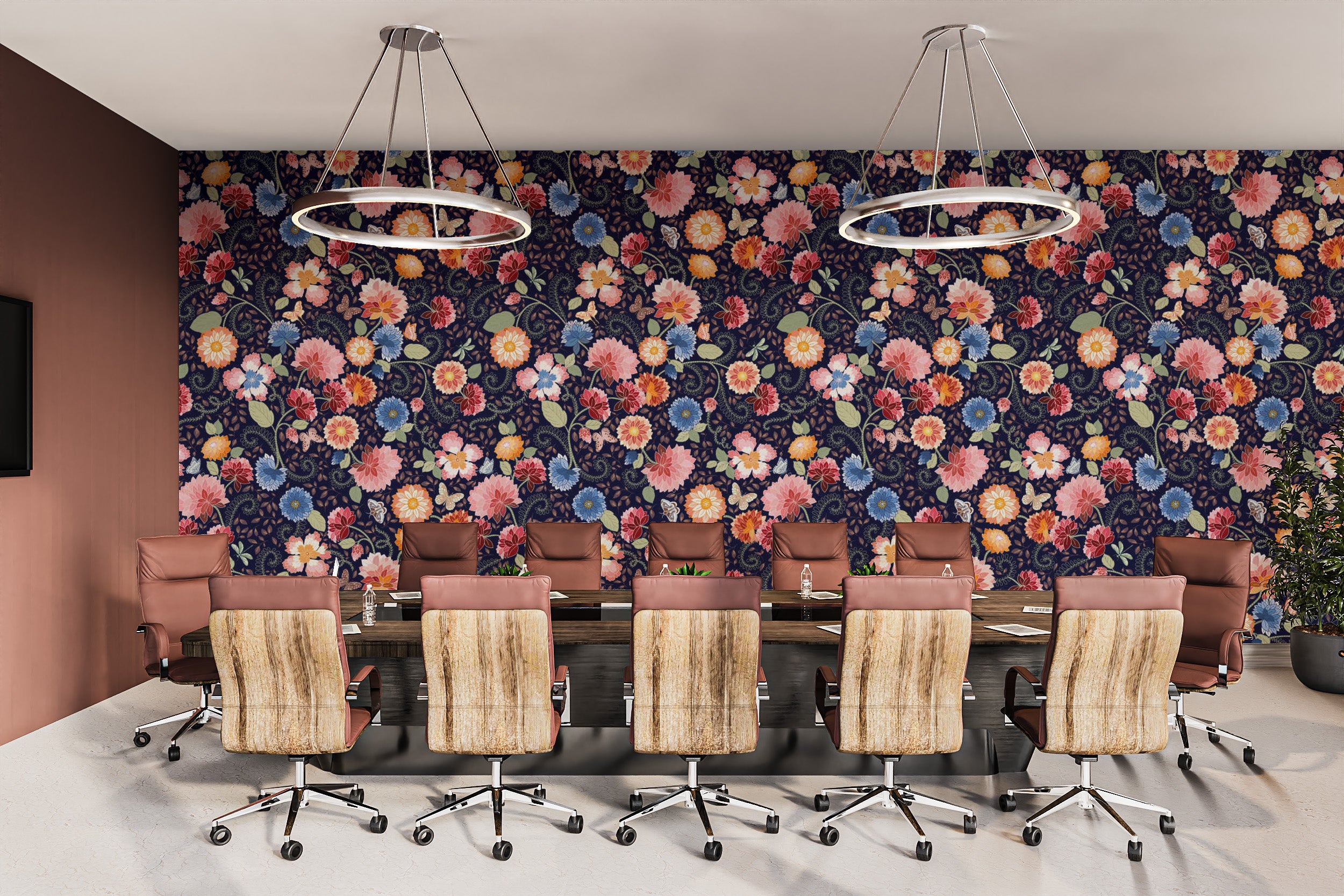 Infuse a touch of nature’s beauty into any room with the Blue Haven Flower Wallpaper, a stunning blend of floral artistry and vibrant color palettes. Adorn your walls with this exquisite pattern, featuring an enchanting array of full-bloom flowers set against a rich navy backdrop. Each petal and leaf has been crafted with intricate detail, creating a tapestry that catches the eye and captivates the senses. This flower wallpaper is a harmonious symphony of blues, pinks, and yellows, meticulously balanced to breathe life into your living space. Ideal for creating a focal point or adding a whisper of botanical charm, the Blue Haven Flower Wallpaper is the perfect choice for those seeking to bring the allure of a blooming garden indoors.