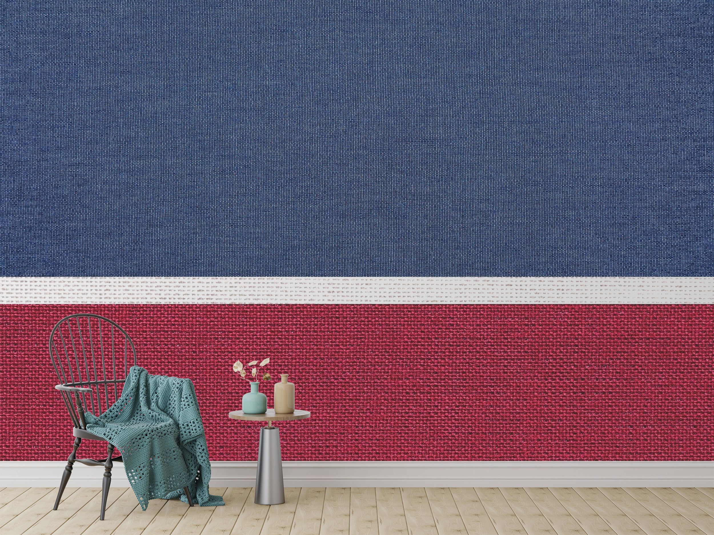 Brighten up your living space with the Blue Fabric Texture Wallpaper, a striking piece of wall art that brings the allure of a fabric fantasy to your home. Our in-house experts have crafted this mural with meticulous attention to detail, offering an exquisite combination of denim blue and rich maroon, divided by a crisp white line for a dramatic effect. The wall texture is not merely a visual treat but a tactile sensation, imitating the feel of genuine fabric.