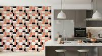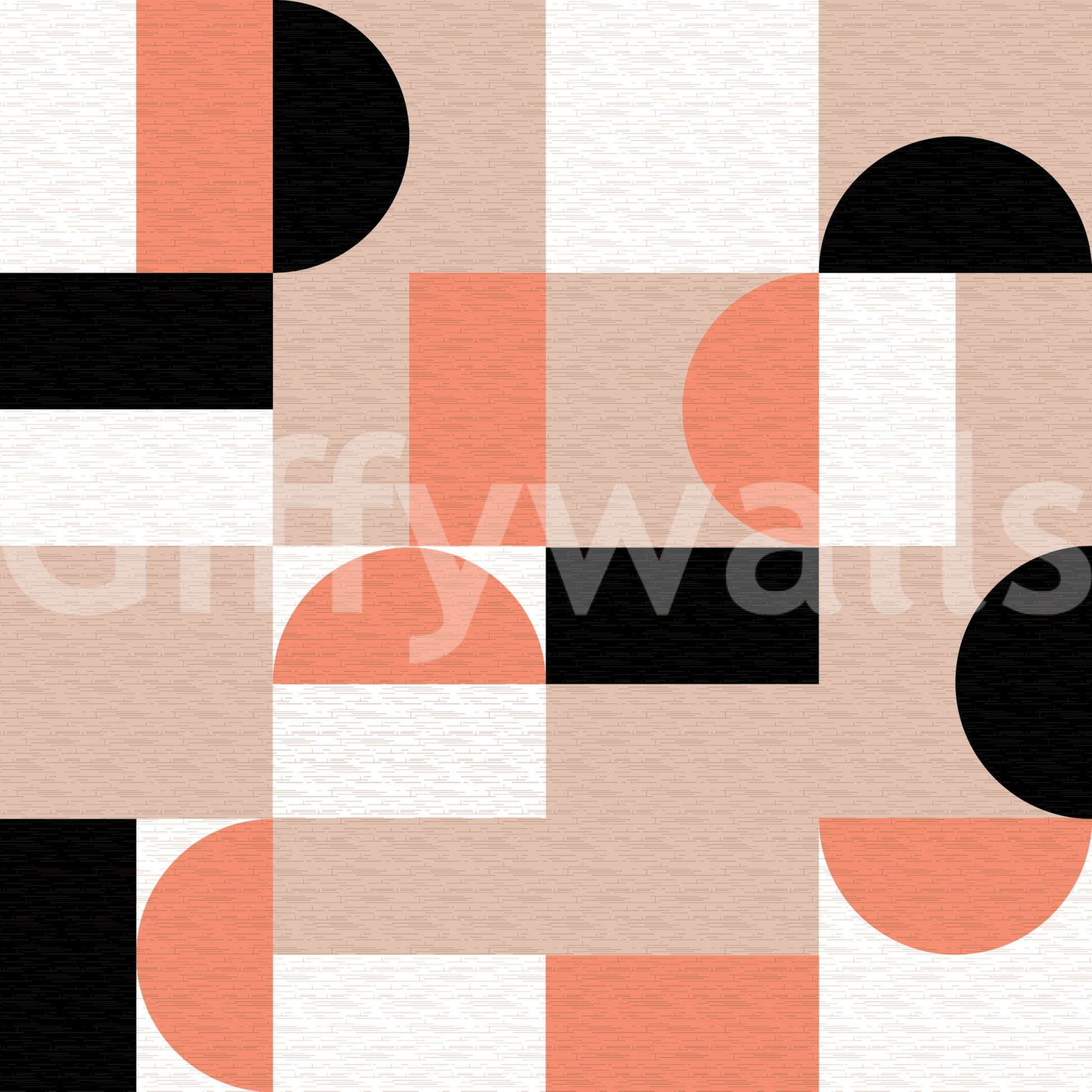 Blush Geometry celebrates the clean geometry of modernist design with soft curves and structured grids. The interplay of blush, coral, white, and black shapes gives it a warm yet graphic energy reminiscent of Bauhaus-inspired forms. This pattern feels architectural yet inviting, perfect for statement or contemporary wall coverings.