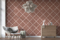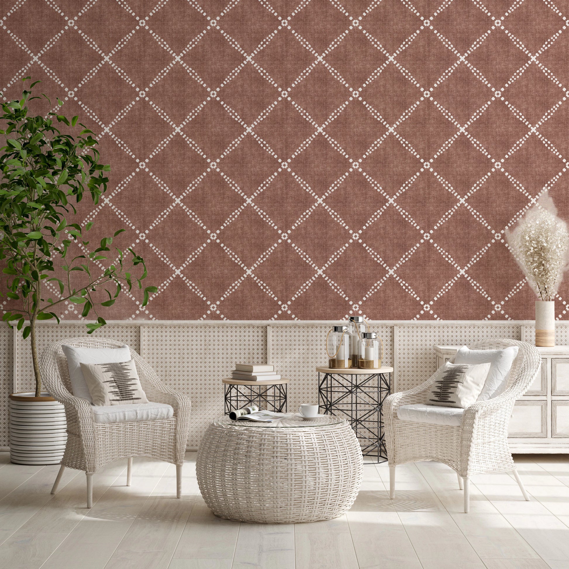 Boho Dotted Trellis Grunge Terracotta Red Wallpaper⁠