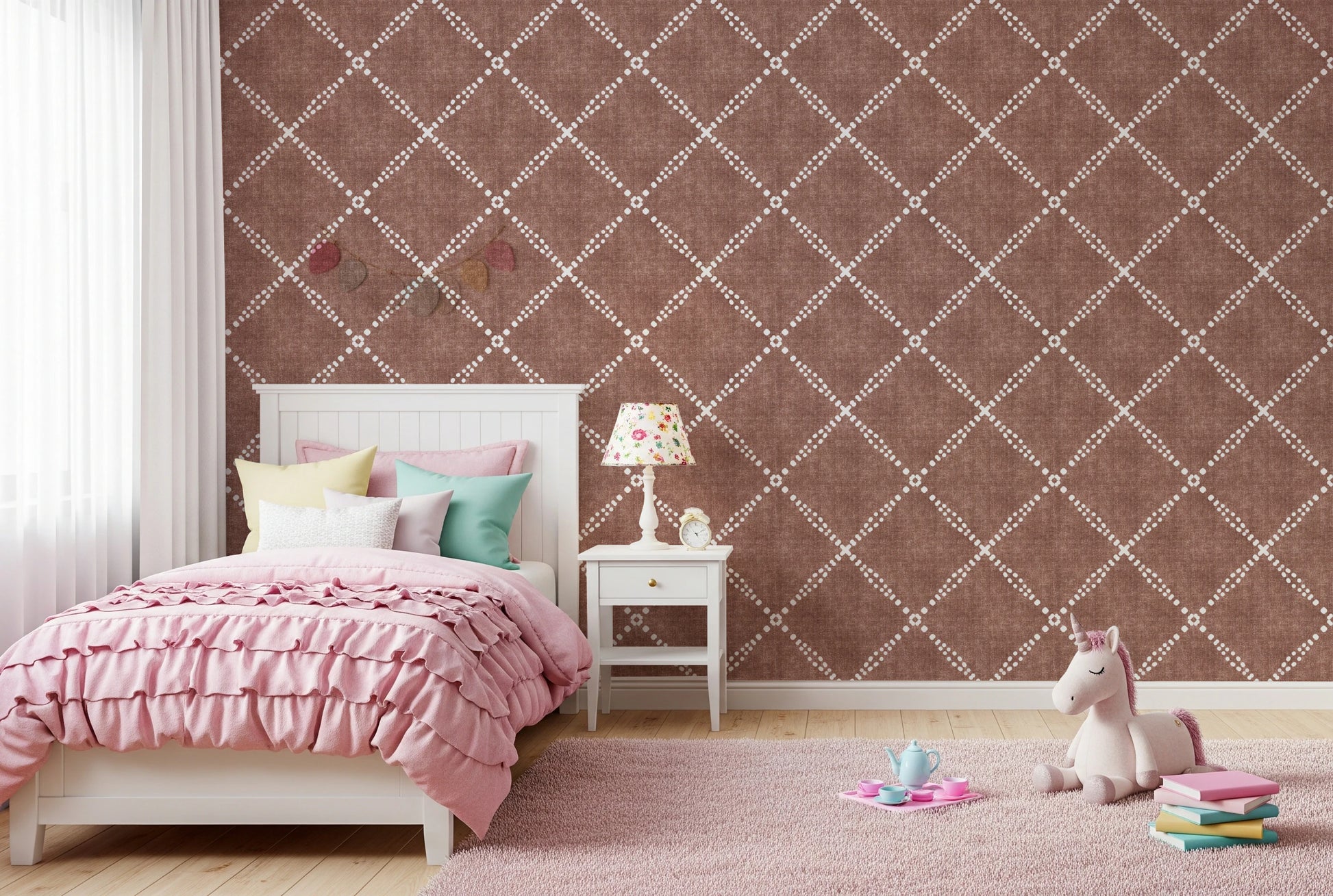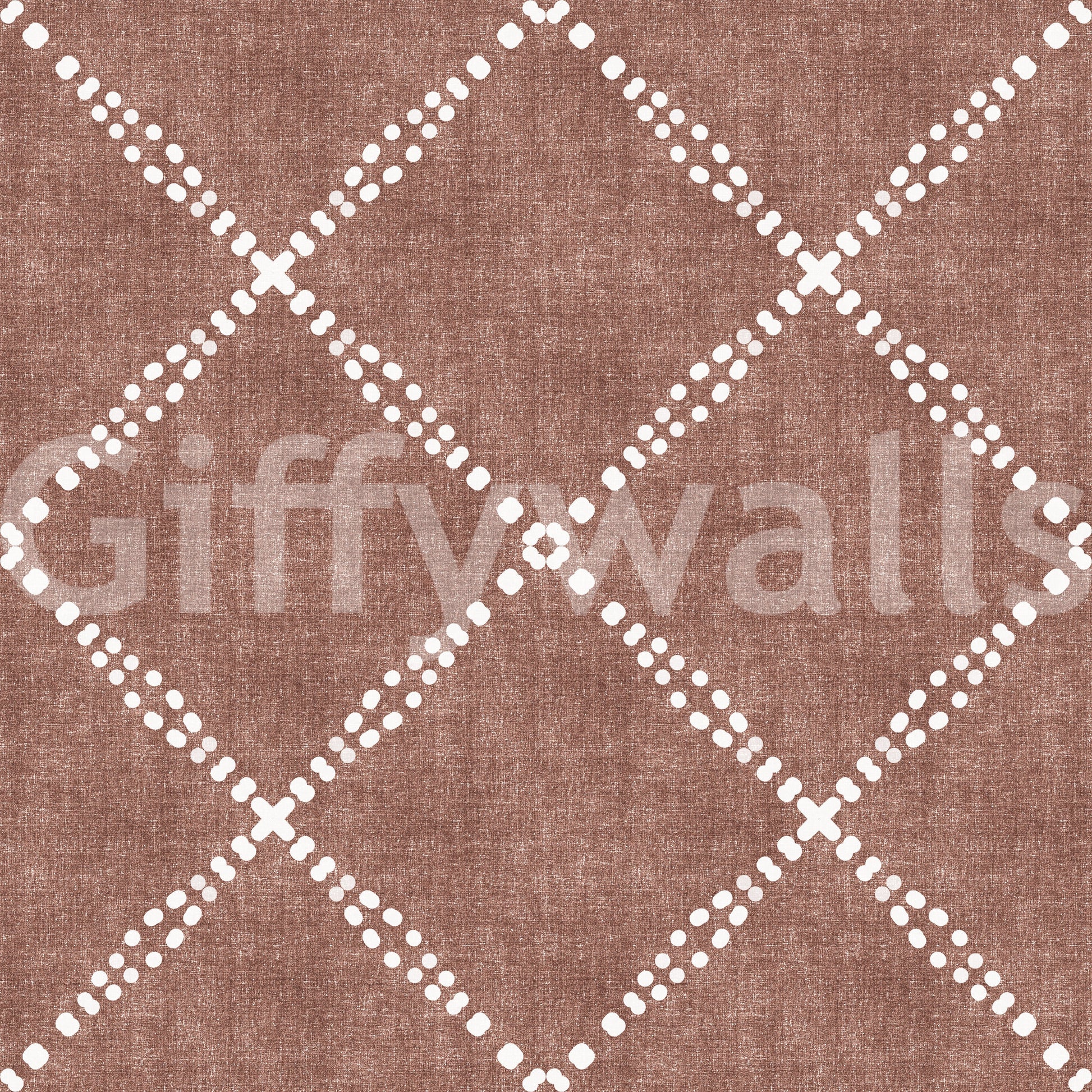 Embrace the earthy allure of our 'Boho Dotted Trellis Grunge Terracotta Red'. This wall covering evokes a relaxed, free-spirited vibe with its unique blend of rustic charm and modern design. The terracotta red backdrop, textured with a subtle grunge effect, provides a warm and inviting atmosphere. A trellis pattern, defined by rows of playful dots, adds a touch of bohemian whimsy. The design is not perfect; it's subtly imperfect, adding to the authentic hand-crafted impression. It's the perfect complement to spaces seeking warmth and character without feeling overwhelming. Perfect for creating a cozy and inviting ambiance in living rooms, bedrooms, or hallways, this design will bring unique character and style to any space.