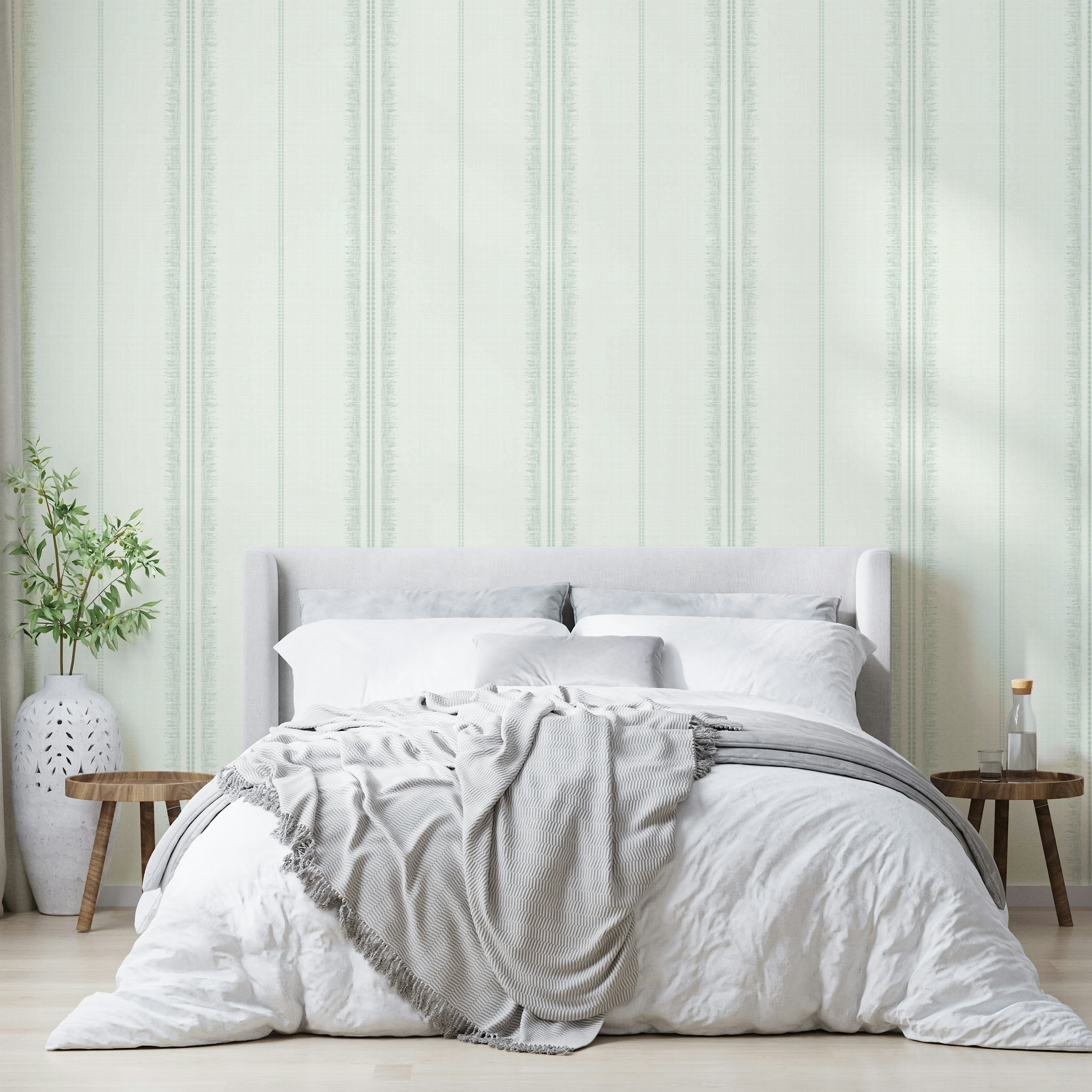 Peel-and-stick Boho Stripes Linen-Sea Green wallpaper for easy decor
