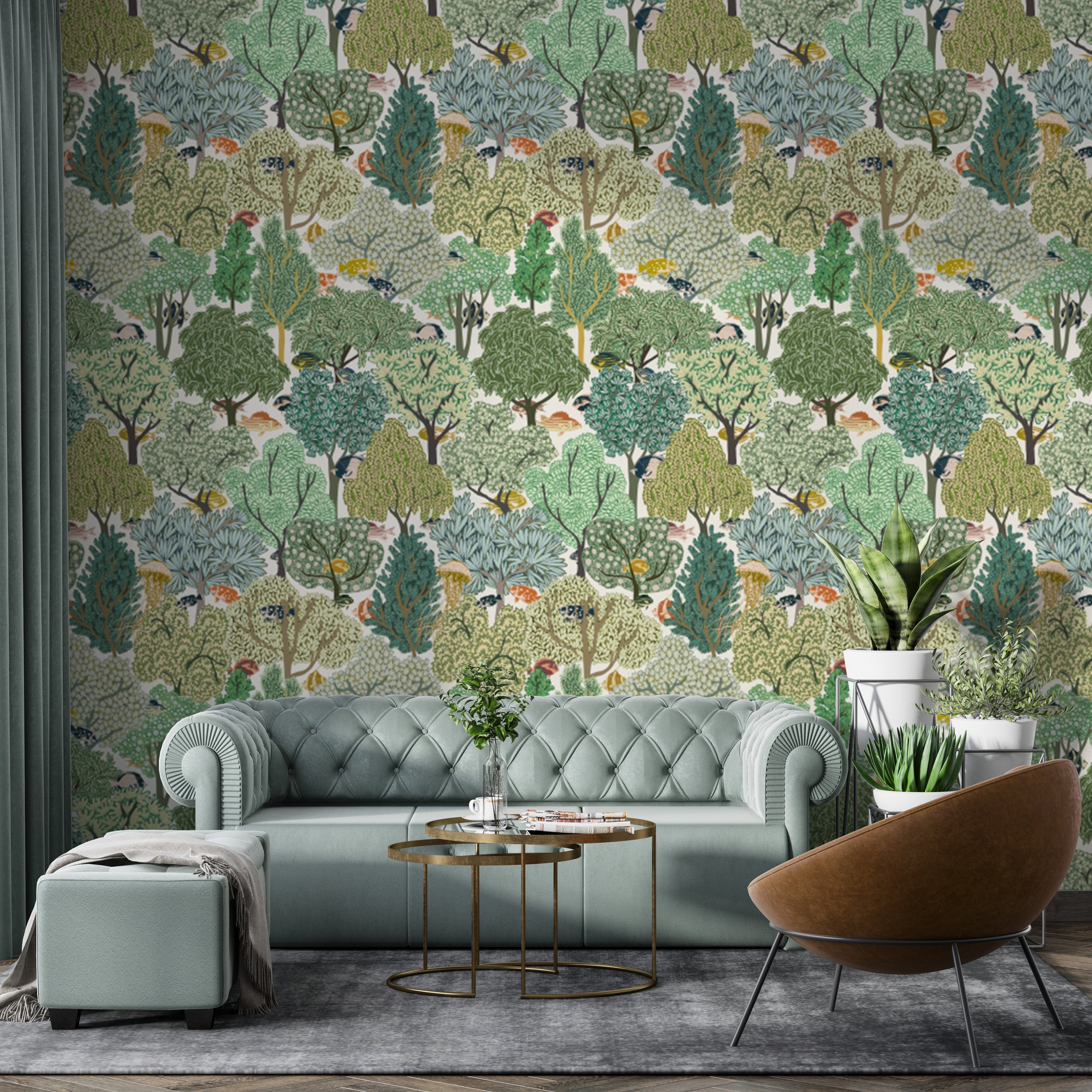 Immerse yourself in the rhythmic dance of flora with the Botanic Ballet Wallpaper Mural. This verdant panorama is a symphony of lush hues, celebrating the vitality of nature in every brush stroke. With its rich palette of green wallpaper, it brings a sense of serenity and growth to any room. Each leaf and tree depicted weaves a visual poem, a captivating ode to the organic beauty that thrives in stillness. Perfect for those seeking to infuse their walls with the timeless grace of nature’s own artistry.