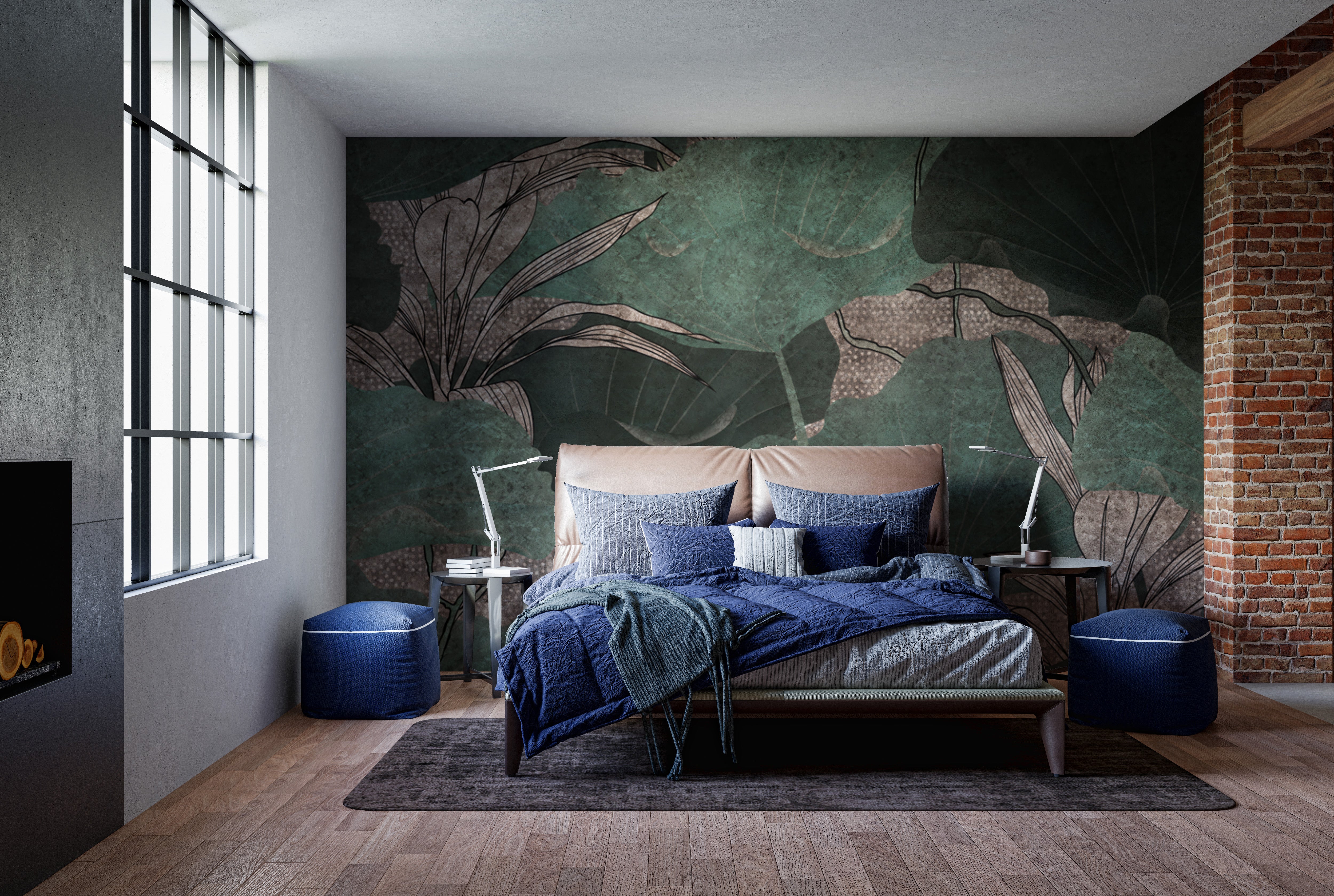 Luxury dark green nature wall covering
