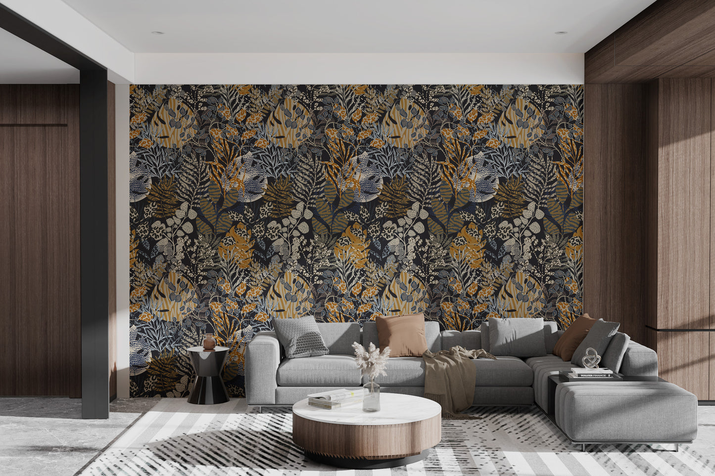 Immerse yourself inside the serene complexity of the botanical nocturne design wallpaper. This tapestry of plants unfurls across your partitions with a lush palette of dusky hues and golden accents. Each stroke captures the enigmatic dance of shadows and mild, crafting an intimate retreat in any room. Witness nature's night time symphony, a sensitive arrangement of leaves and petals that whispers stories of the forest's secret existence. This botanical wallpaper is not only a backdrop; it is a narrative that blooms quietly, providing a unique visual feast that nurtures the soul and captivates the eye with its complicated detail and spell binding patterns.