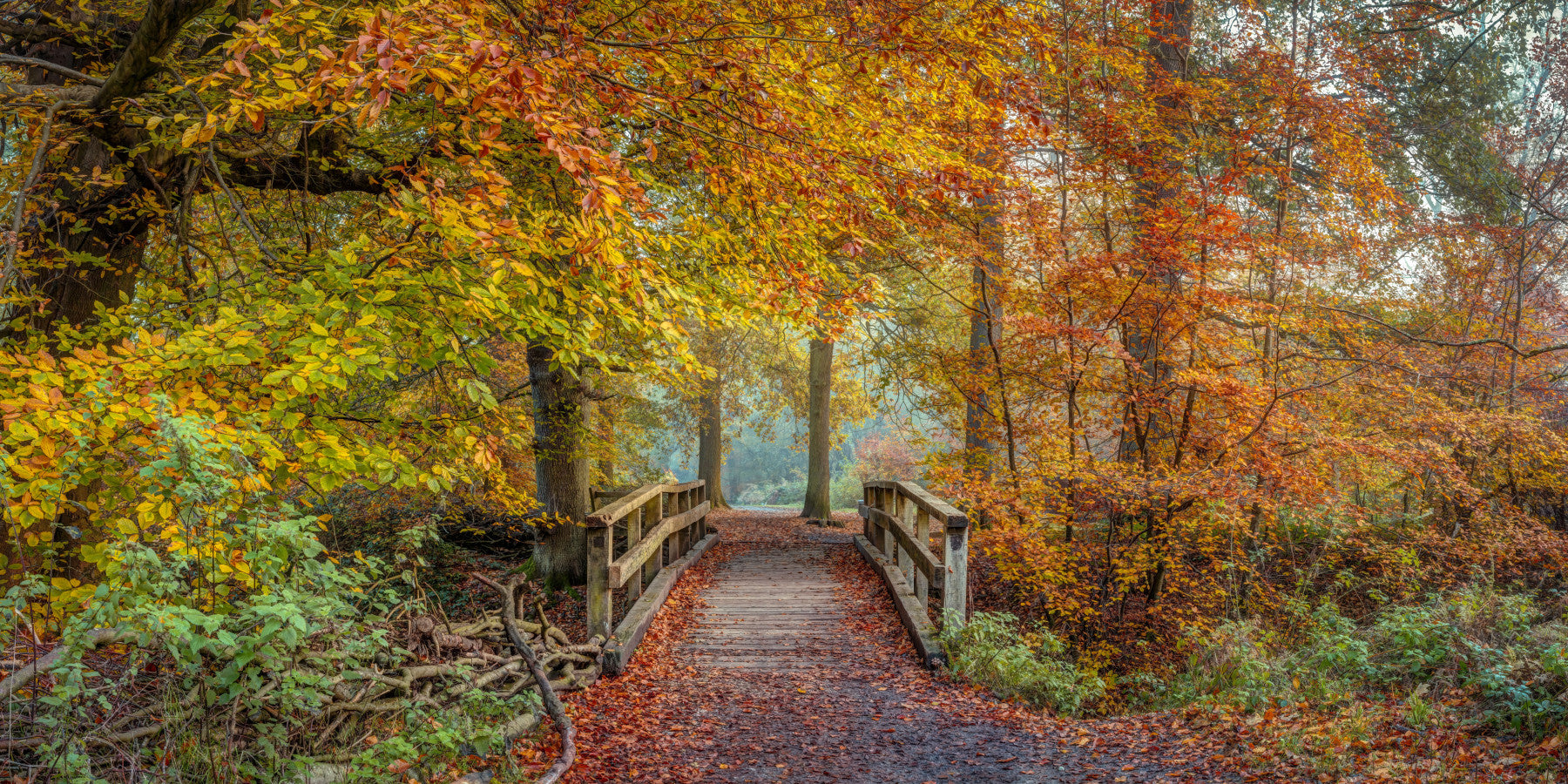 Our Bridging Seasons Wall Mural gives your home a feeling of serene beauty and natural wonder. This wall mural features a picturesque wooden bridge spanning a forest floor blanketed in vibrant autumn leaves. The rich yellows, oranges, and reds of the foliage contrast with the lush green foliage, creating a peaceful and inviting backdrop, perfect for a living room, dining room, or study. This high-quality wallpaper for walls is durable and easy to install, making it a simple way to get a classic, high-end look with a touch of peaceful charm.