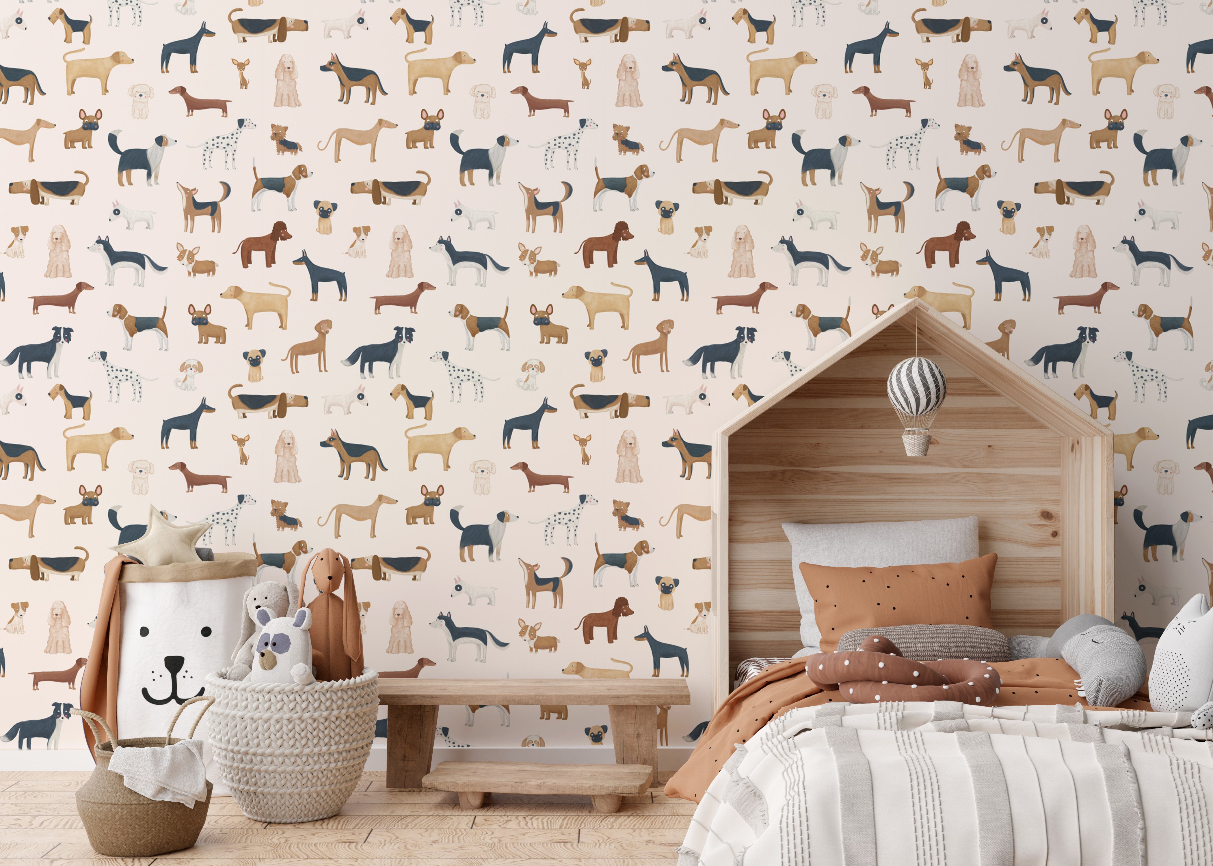 Brighten up your child's playroom with our canine medley funny wallpaper! This playful design showcases a delightful mix of dog breeds on a cream canvas, adding a touch of whimsy and joy to any room. It's an ideal choice for a fun and engaging nursery wallpaper, sparking imagination with every glance. Durable and easy to apply, this wallpaper is perfect for creating a lively backdrop for playtime adventures. Each roll is crafted to captivate and endure, making it a favorite for both little ones and their parents. Bring the joy of these charming pups into your home today!