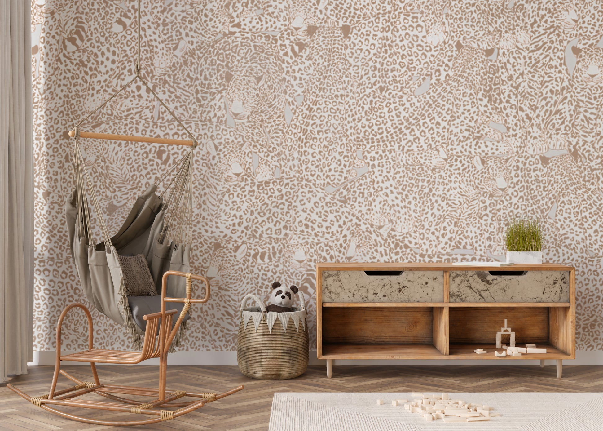 Sophisticated cheetah print wallpaper for elegant interiors.