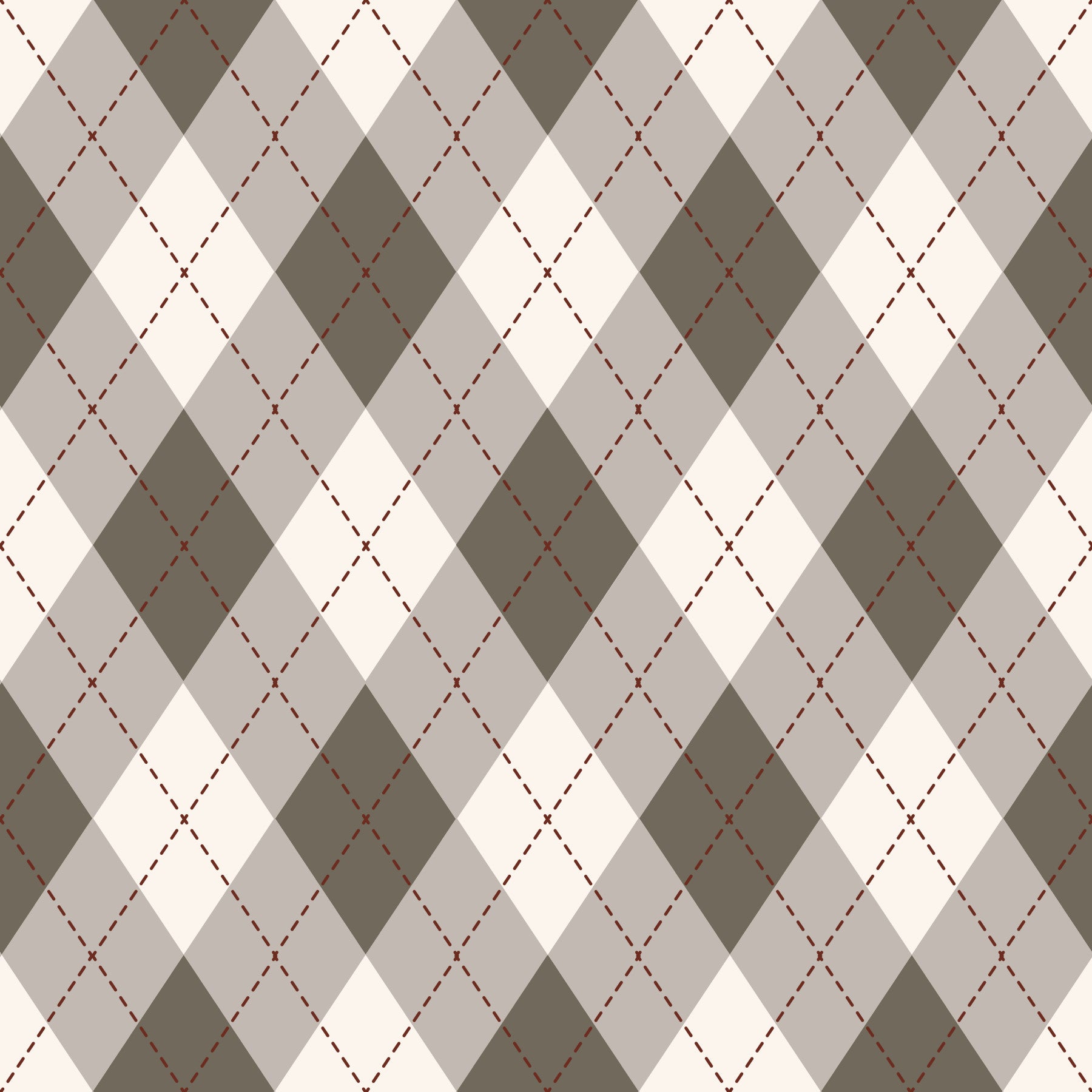 Immerse yourself in the timeless elegance of the Classic Argyle Pattern Dark Sage and Beige wallpaper. This sophisticated design features a traditional argyle pattern, rendered in a harmonious blend of dark sage and creamy beige hues. The earthy dark sage lends a grounding and natural feel, while the beige provides a soft, inviting contrast. Dotted crossing lines of deep brown weave through the diamonds to add visual interest and texture, enhancing the overall depth and richness of the design. This wallpaper evokes a sense of refined comfort, reminiscent of cozy libraries and warm, inviting spaces. Perfect for creating a calming yet stylish atmosphere, this argyle pattern is ideal for bedrooms, living rooms, or any space where a touch of classic sophistication is desired. Bring a touch of timeless charm to your walls with this beautifully balanced and versatile design.