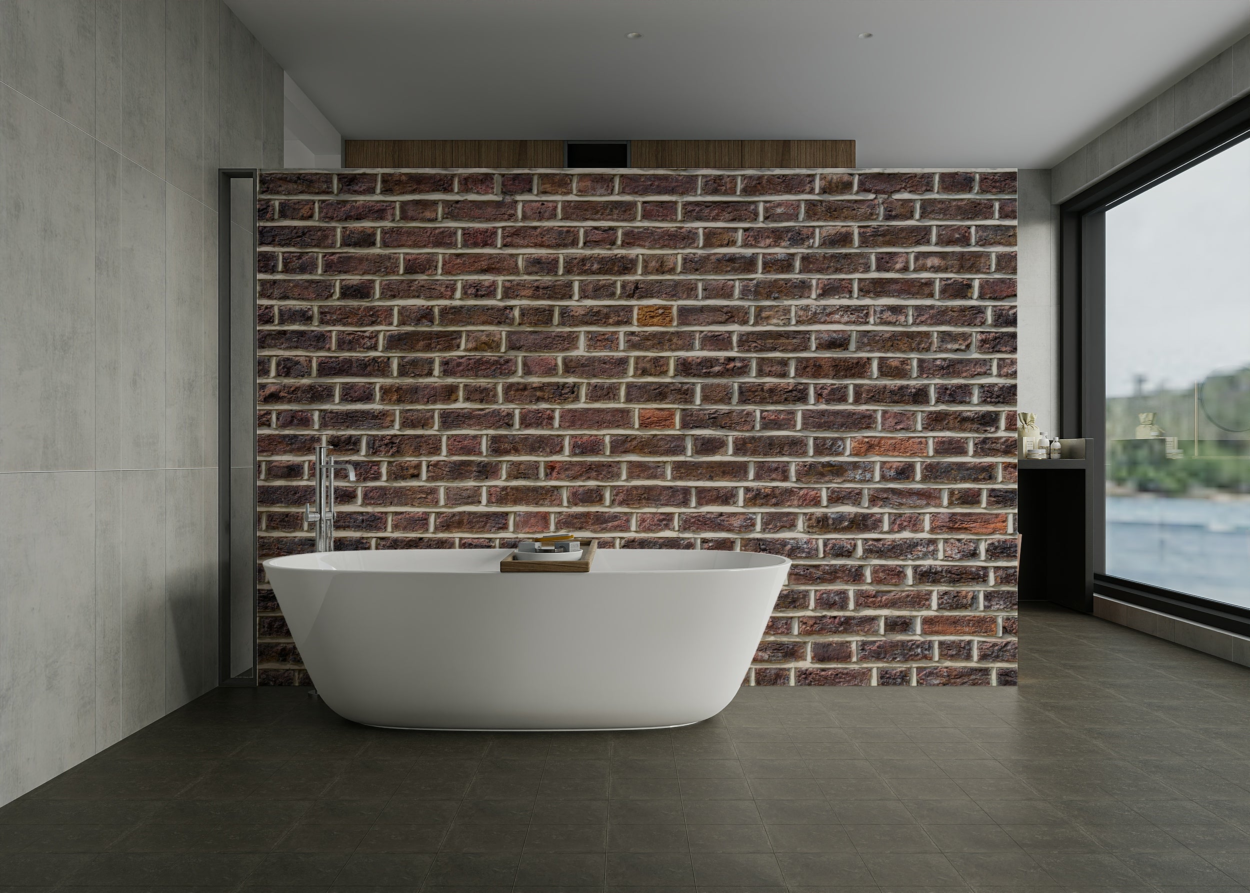 Urban-inspired brick wall design in a warm red tone.