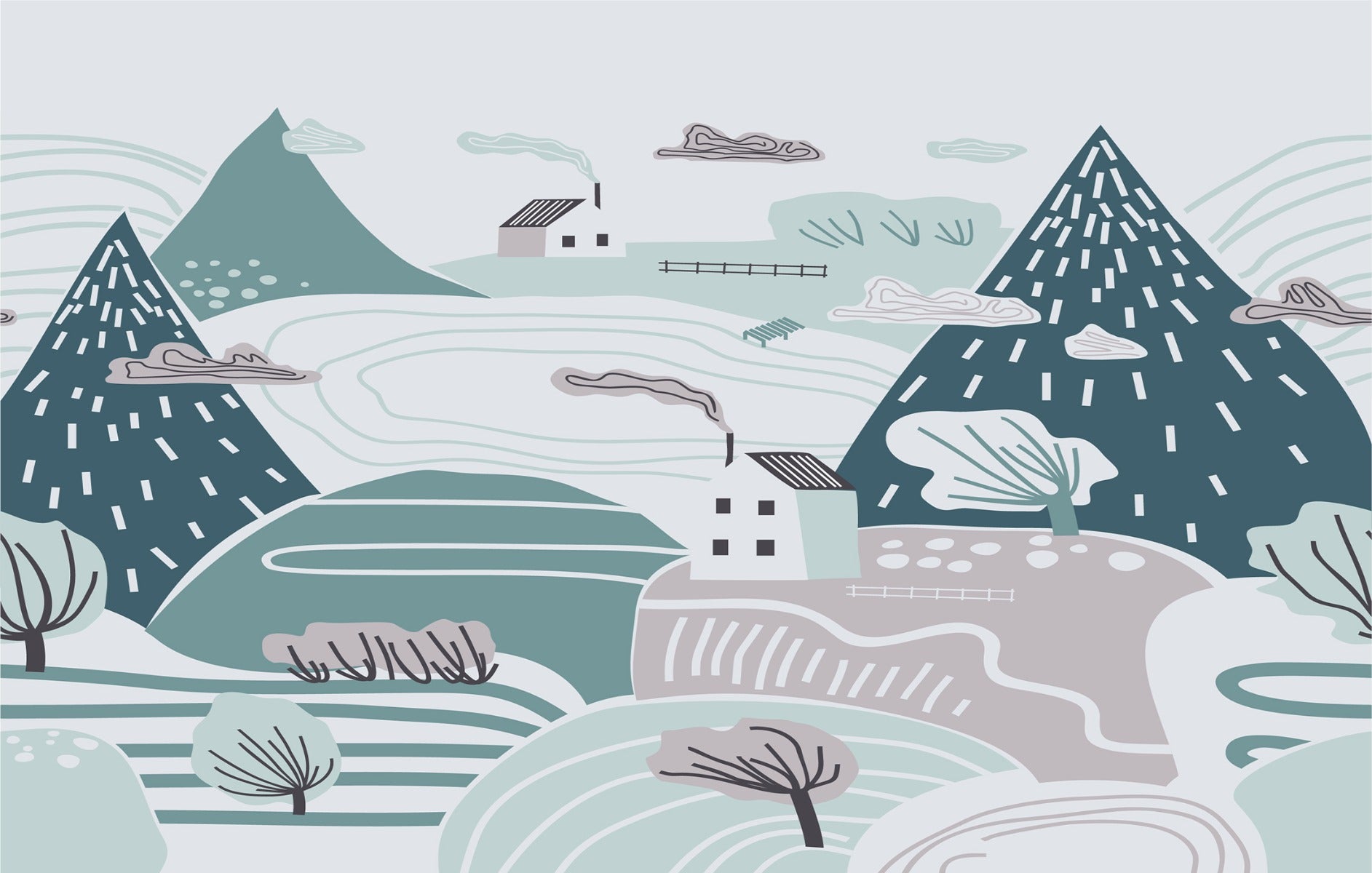 Child-friendly winter countryside wallpaper mural