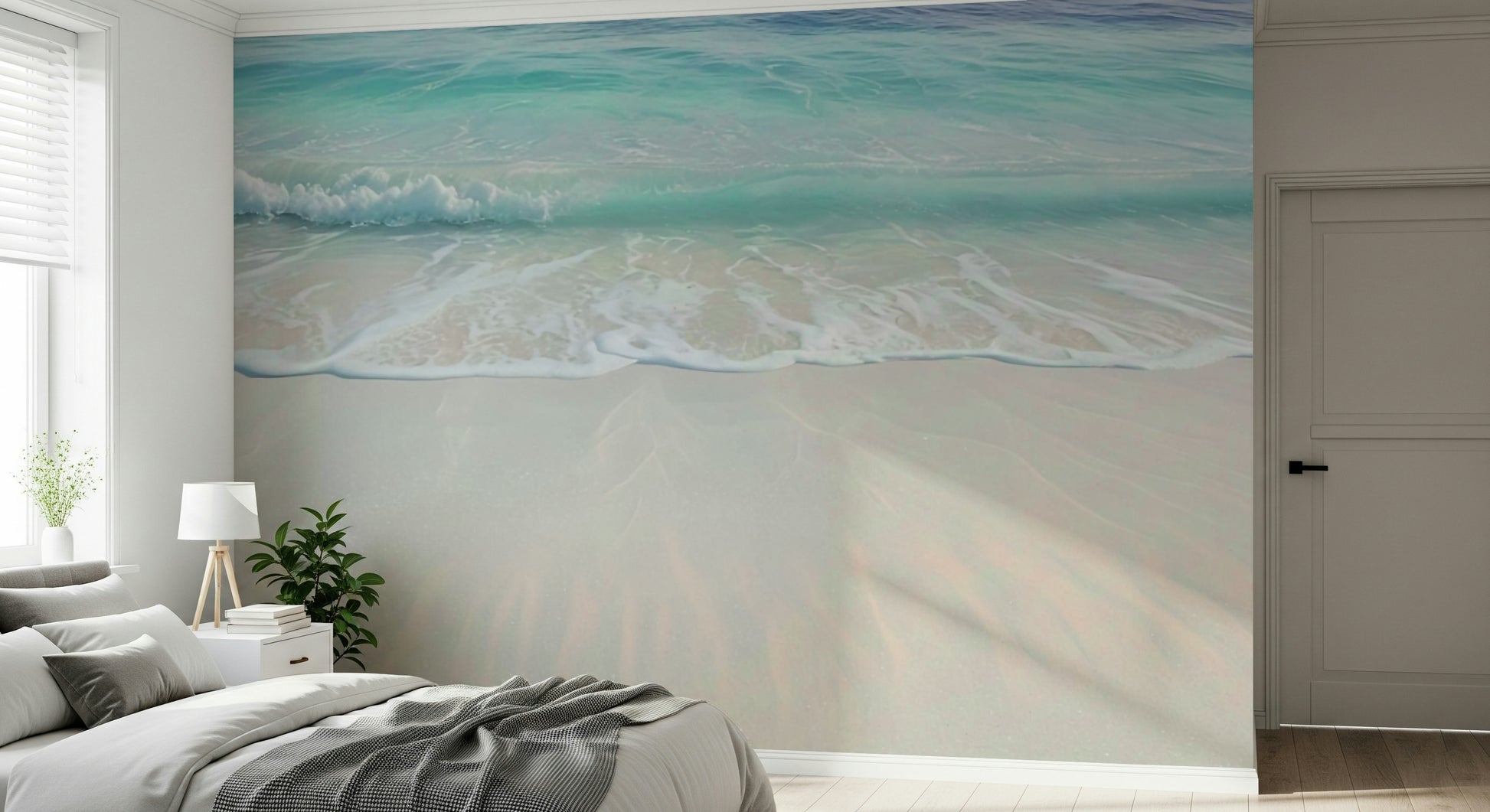Bring the ocean's calm to your home with this coastal-inspired wallpaper for walls. The soft, undulating waves in hues of turquoise and white create a relaxing atmosphere. This design evokes a sense of serenity and space, working well in bedrooms, bathrooms, or living areas. The light color palette creates a bright and airy feel, making it ideal for smaller rooms or spaces with limited natural light. The wave pattern introduces a subtle texture that complements modern and minimalist decor styles. The soothing color scheme promotes relaxation, and enhances the overall ambiance of any room.