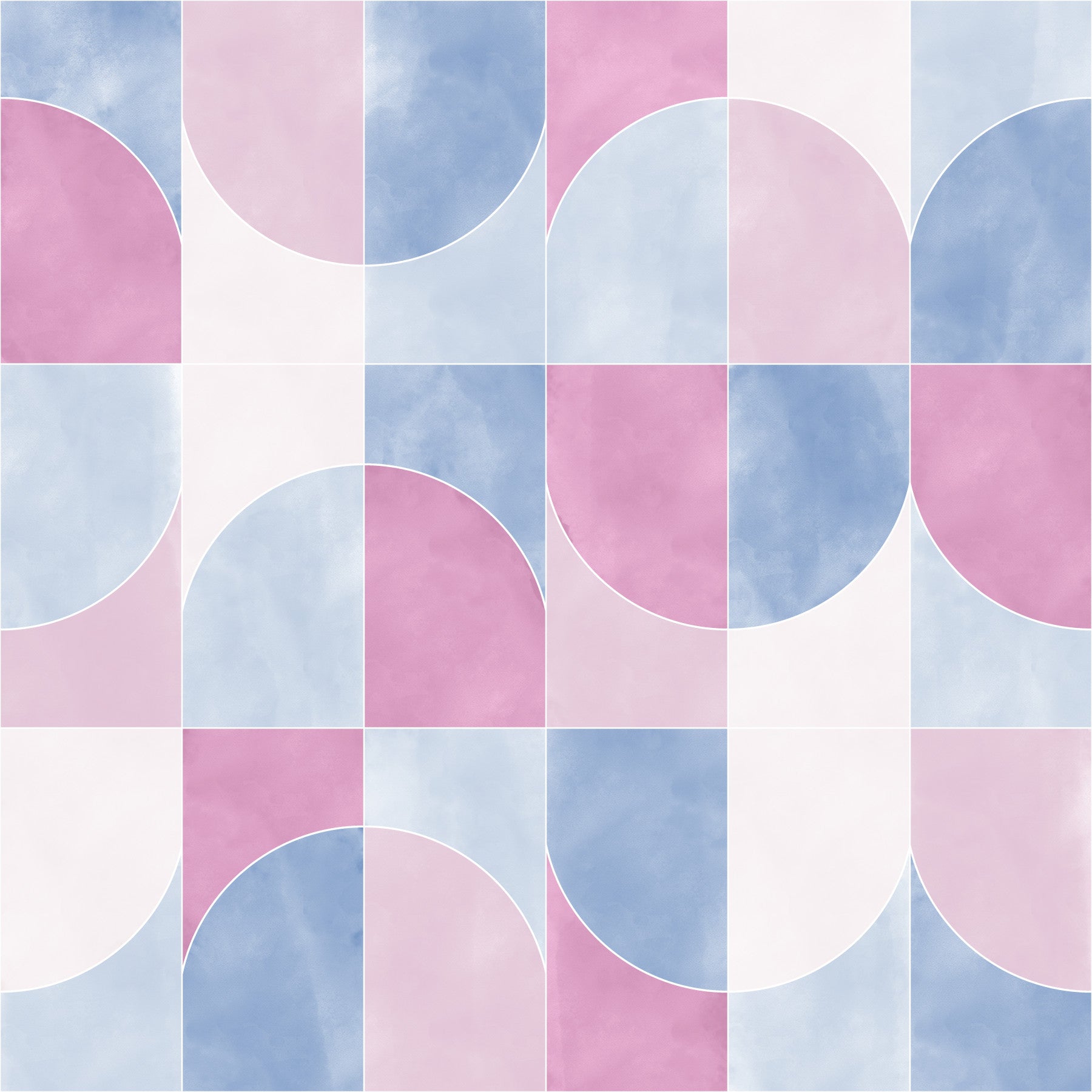 Indulge in the sweet serenity of Color Washed Geo Tiles Cotton Candy a delightful wallpaper that blends geometric precision with a whimsical, watercolor-inspired aesthetic. Gentle hues of pastel pink and dreamy blue intermingle across a structured grid of semi-circles, creating a visually soft and calming effect. The color-washed texture mimics the delicate appearance of cotton candy, evoking a sense of nostalgic sweetness and lighthearted joy. Clean, white lines frame each tile, adding a touch of modern sophistication and enhancing the overall visual harmony. Perfect for creating a relaxing and inviting atmosphere in any space, this wallpaper brings a touch of playful elegance to your walls. Its unique blend of geometry and soft colors makes it versatile for various decor styles, from minimalist to bohemian, adding a subtle touch of artistic charm.