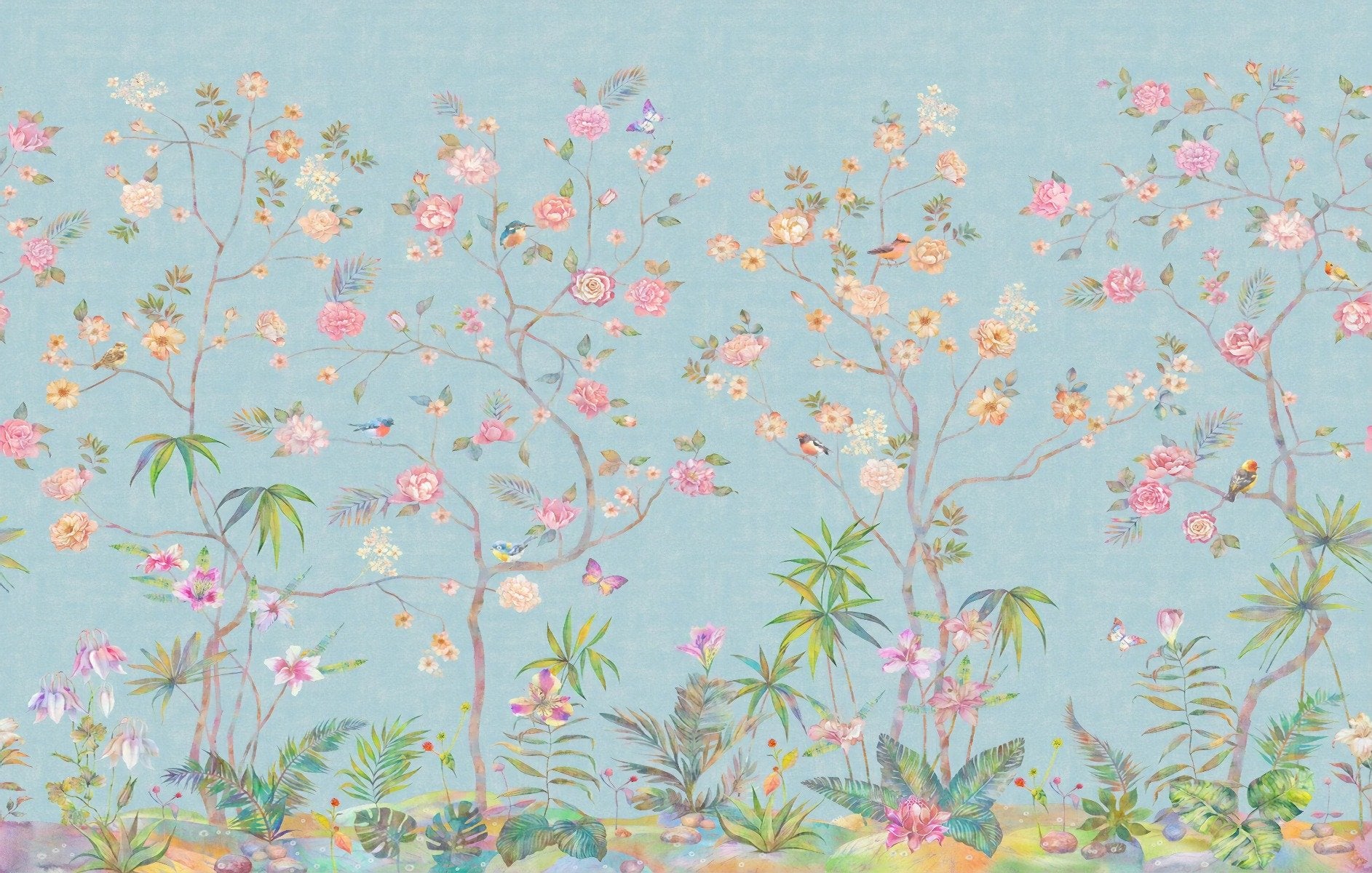 Elevate your space with the enchanting allure of our colorful Chinoiseries Wallpaper Murals. A masterpiece of design, this vintage floral wallpaper bursts with hues of serene blue, delicate pink, and pristine white, creating a captivating visual symphony. Perfectly suited for an elegant bedroom when paired with dusky pink decor or for adding a whimsical touch to a nursery or girl's room alongside vibrant teal, coral, or yellow accents.