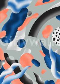 Elevate your interior spaces with this playful wallpaper for walls. A compilation of flowing shapes in coral, indigo, and monochrome tones creates visual intrigue. The design offers a modern twist and adds character. Ideal for a teen's room, a creative studio, or an entryway, it brightens any space. Its abstract design can pair with diverse interior styles, bringing a burst of color and energy to any room.
