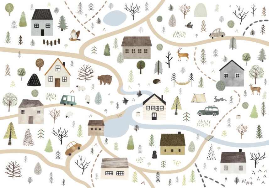 Discover serenity in simplicity with our countryside charm wall mural. This exquisite white wallpaper offers a subtle yet detailed portrayal of rural life. Each glance brings a fresh appreciation for the gentle houses, winding roads, and friendly fauna that populate this tranquil village tableau. Perfect for creating a calming backdrop in your home, this design promises a peaceful atmosphere in a sophisticated package.
