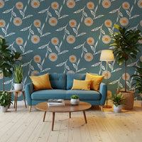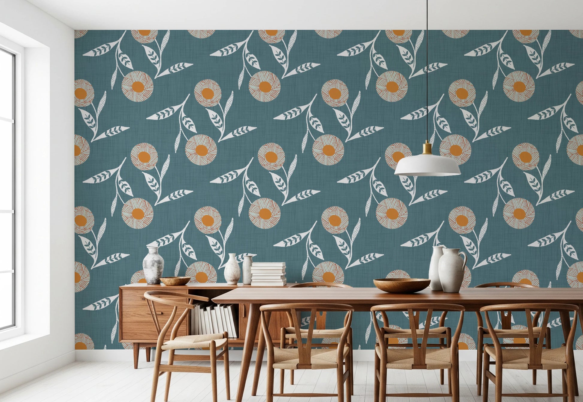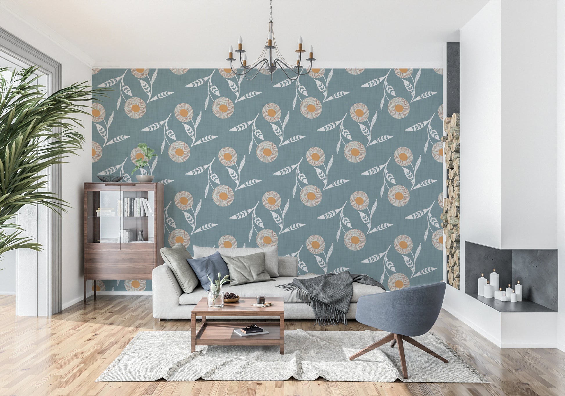 Embrace the serenity of Scandinavian design with this delightful botanical wallpaper. "Cozy Scandi Flower" features stylized flowers in a palette of muted blues, soft greys, and warm oranges, creating a comforting and inviting atmosphere. The crafted aesthetic, with its textural details and hand-drawn feel, adds a touch of artistry to your walls. This Nordic-inspired design brings a sense of calm and understated elegance to any room. Perfect for creating a cozy and relaxing sanctuary in your home, this wallpaper is ideal for bedrooms, living rooms, or any space where you desire a touch of natural beauty and tranquil charm. Invite the essence of Scandinavian simplicity into your living space with this charming floral motif.