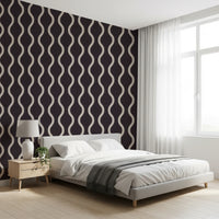 Embrace the warmth and simplicity of Scandinavian design with this 'Cozy Scandi Folk' wallcovering. A charcoal linen-look background provides a sophisticated backdrop for gently curving, warm linen-colored stripes. The design evokes a hand-crafted feel, bringing a touch of artisanal charm to your home. The subtle texture of the linen effect adds depth and visual interest to the surface, creating a cozy and inviting atmosphere. Ideal for adding understated elegance and a touch of hygge to any room, this wallcovering brings a sense of calm and organic beauty to your interior décor.