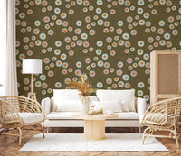 Cozy Scandi Folk Dot Floral Earthy Olive - Craft Circle Wallpaper⁠