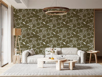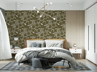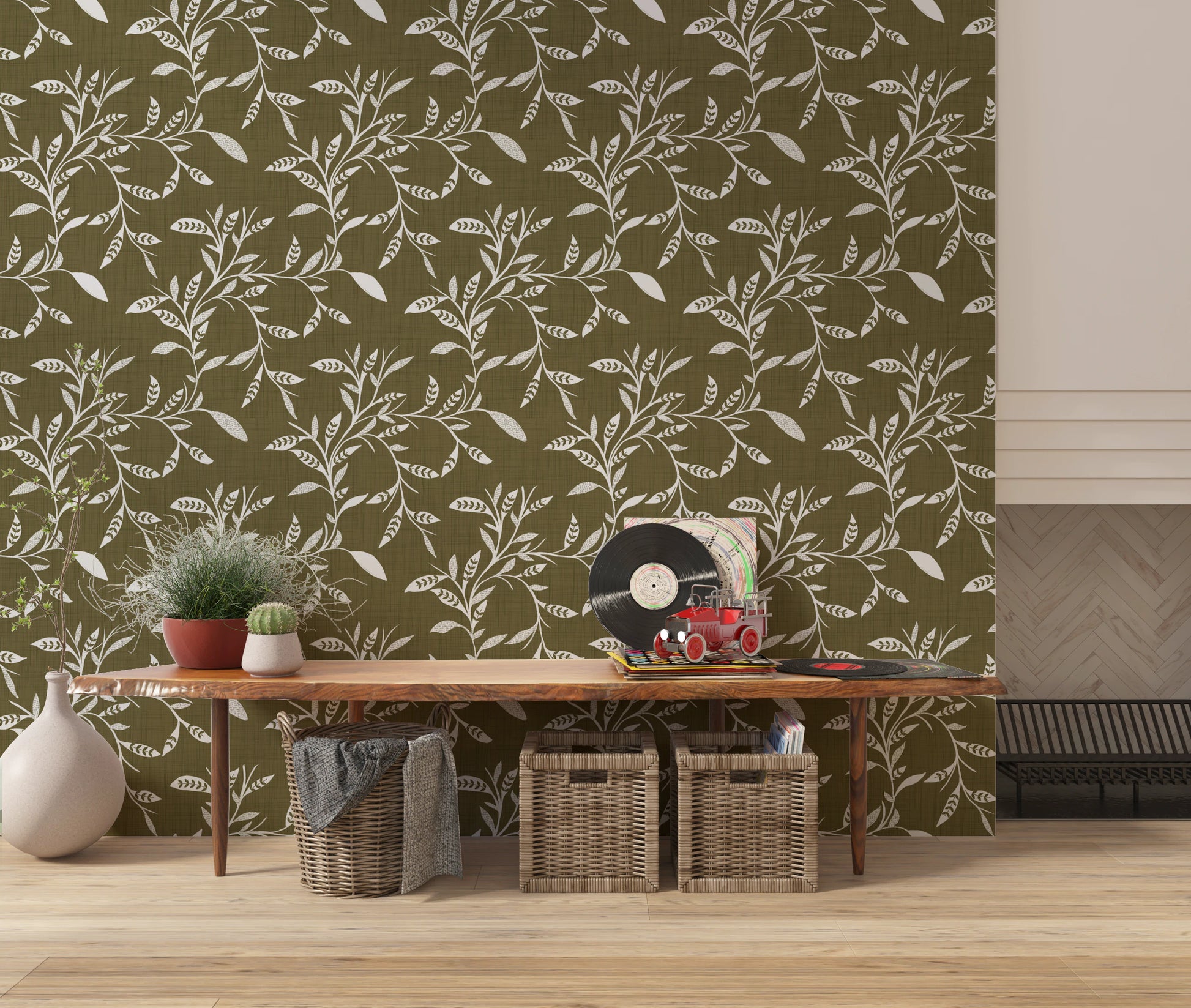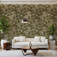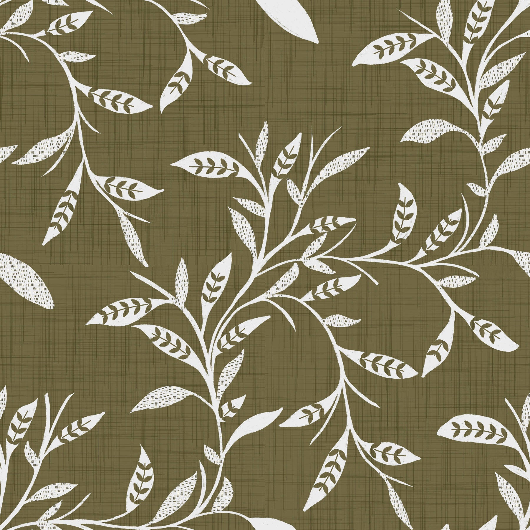 Cozy Scandi Folk Leaf Vine Earthy Olive - Craft Blender Wallpaper⁠