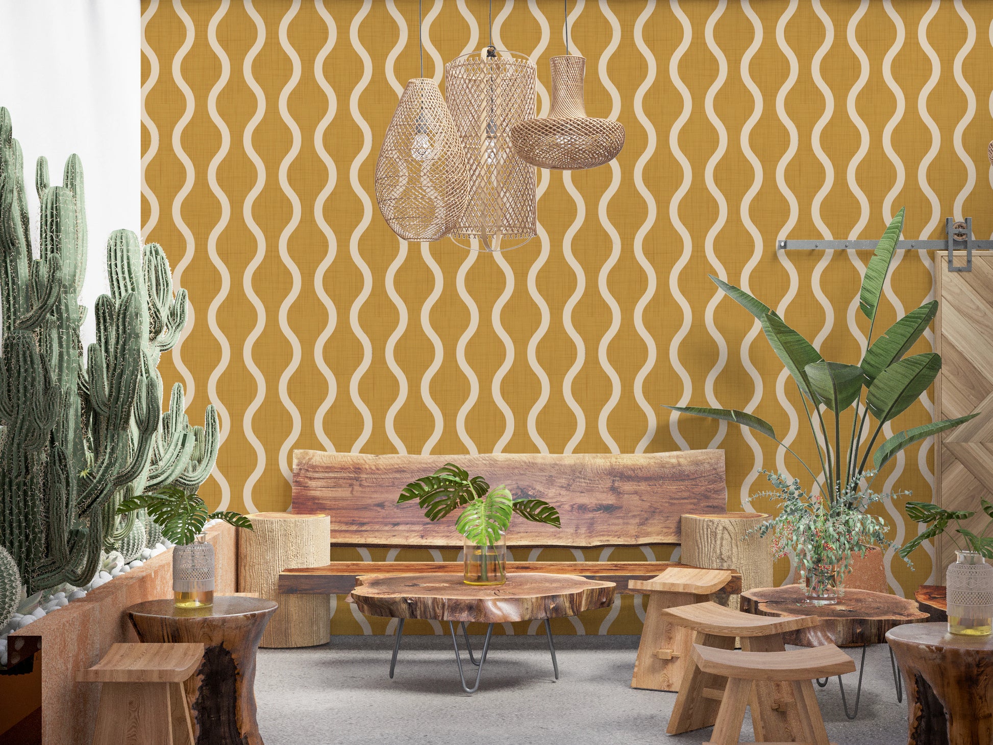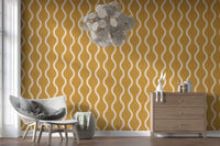 Embrace the warmth and simplicity of Scandinavian design with our 'Cozy Scandi Folk Wavy Stripe Honey Mustard' wall covering. This design infuses your space with a sense of handcrafted charm, featuring gentle, undulating stripes in a soothing honey mustard hue, contrasted by soft, creamy waves. The textured background adds a touch of rustic appeal, creating a cozy and inviting atmosphere. The relaxed waves offer a playful yet sophisticated rhythm, perfectly balancing visual interest with serene comfort. Ideal for creating a calming and stylish backdrop in any room, this pattern captures the essence of folk art with a contemporary twist, making it a versatile choice for adding subtle elegance to your walls.