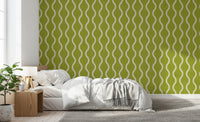 Cozy Scandi Folk Wavy Stripe Olive Chartreuse - Craft Stripe Wallpaper⁠