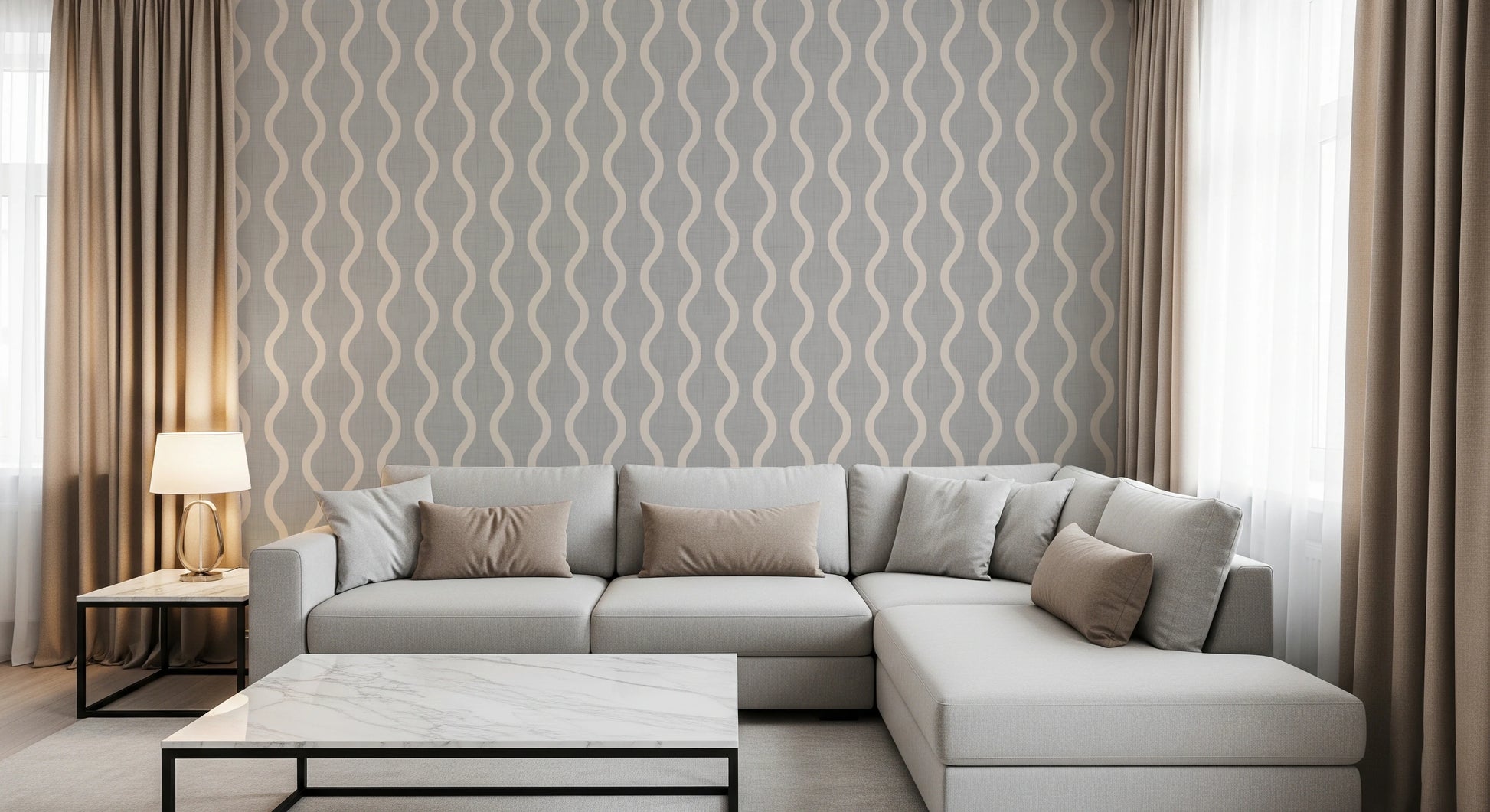 Embrace the understated charm of Scandinavian design with our 'Cozy Scandi Folk' wallcovering. This pattern evokes the warmth of a rustic countryside retreat, perfect for creating a serene and inviting atmosphere. The design features gently undulating, craft-inspired stripes in a soft, linen-like hue, set against a textured background reminiscent of woven fabric. Its subtle color palette brings a touch of organic elegance, while the wavy lines introduce a sense of movement and flow. This wallcovering is an ideal choice for those seeking a minimalist yet cozy aesthetic in their living spaces. Bring the simplicity of Scandi style to your walls and create a haven of tranquility.
