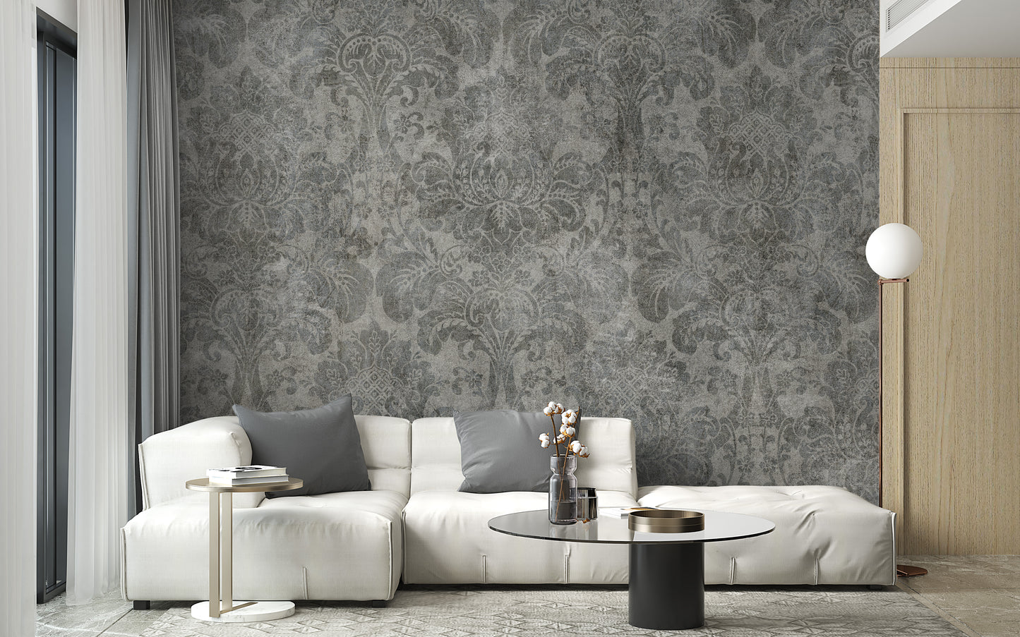 Graceful damask wall design for luxury interiors