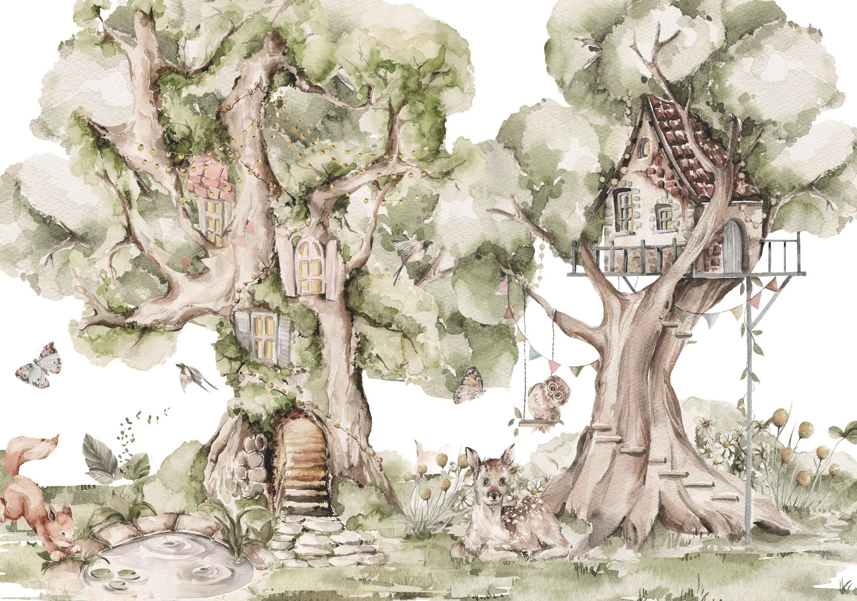 The critter cottage wall mural is a captivating addition to any child's bedroom, offering a vibrant and engaging backdrop that promotes imagination and creativity. This kids room wallpaper features an array of delightful woodland creatures and detailed treehouse designs, creating a playful scene that enchants and inspires young minds. Perfect for both nurseries and playrooms, the mural brings stories to life, providing the ideal setting for imaginative play and peaceful slumber. By incorporating this mural, parents can create a stimulating environment that encourages creativity and story-telling. Get yours today and watch your child’s imagination take flight.