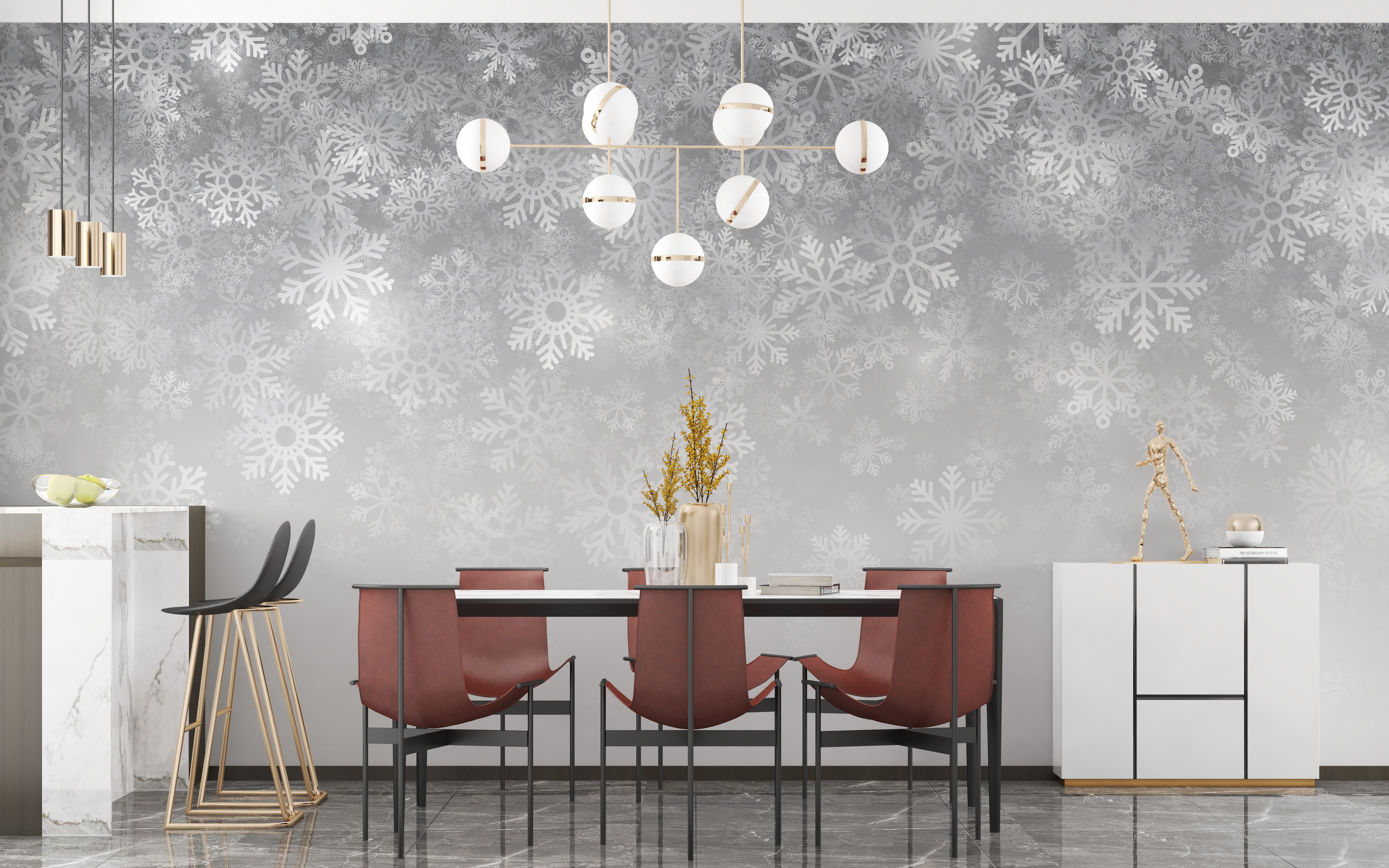Elevate your home decor with our Crystalline Snowflake Wallpaper Mural, a stunning design that brings the magic of winter into your space. This black and white snowflake wallpaper offers a frosty charm, perfect for adding a modern winter touch to any room. The abstract design features crystal clear snowflakes, evoking the tranquility of a winter wonderland snowflake wall mural, ideal for bedrooms or living rooms. The frosted snowflake wallpaper effect with a fading gray background transitioning into ivory creates a sense of calm and romance. Whether you're looking to refresh your space with a cozy vibe or preparing your home for the holiday season, this icy snowflake wall mural is a perfect choice.