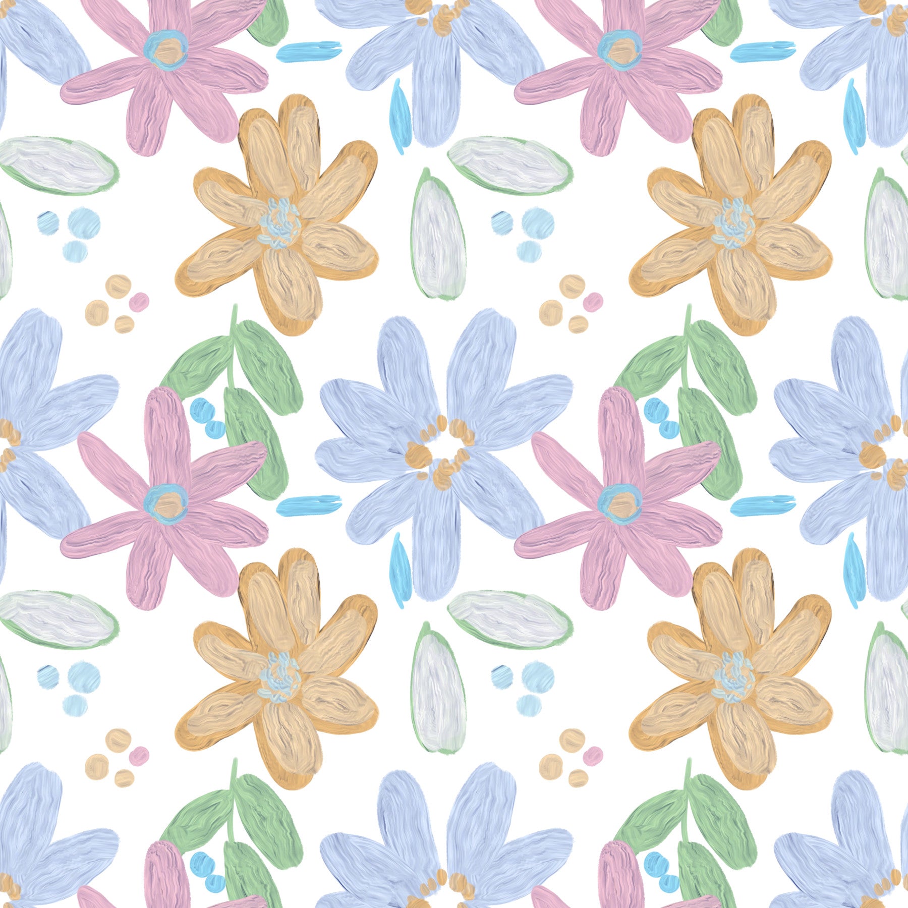 Bring the joy of a blooming spring garden into your space with this delightful "Cute Impasto Oil Painted Flowers Pattern" wallpaper. This whimsical design features charming, stylized flowers rendered in a thick, textured impasto style that mimics the depth and vibrancy of real oil paint. Soft hues of blush pink, sky blue, and warm gold dance across a clean white background, creating a light and airy feel. Scattered brushstroke accents add a playful touch, enhancing the handcrafted aesthetic. Perfect for nurseries, bedrooms, or any space where you want to cultivate a sense of cheerful serenity, this wallpaper promises to infuse your surroundings with a touch of artistic flair and irresistible charm. The subtle color palette ensures versatility, blending seamlessly with a variety of interior styles, from modern minimalist to cozy farmhouse chic. Embrace the beauty of nature, captured in a truly unique and heartwarming design.